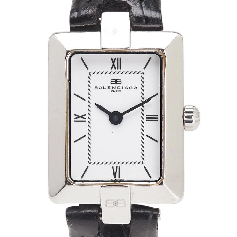 Pre-owned Balenciaga watch with a white dial, stainless steel and leather strap.