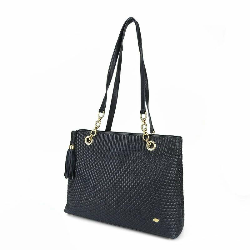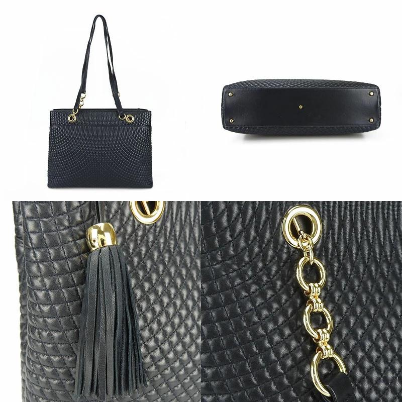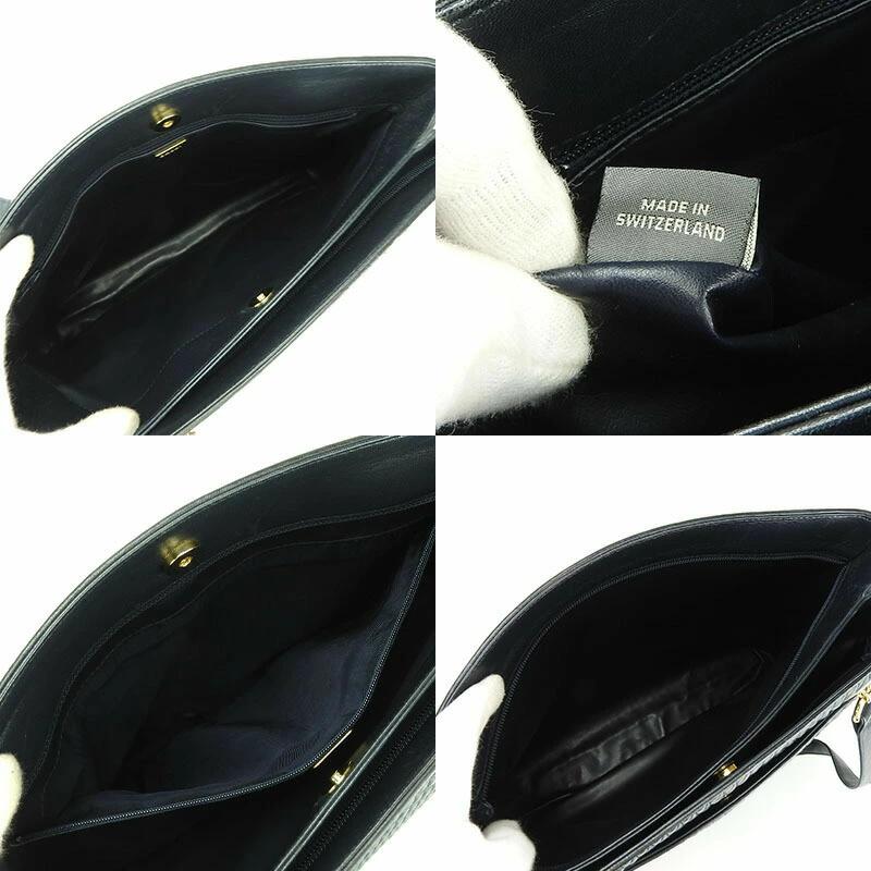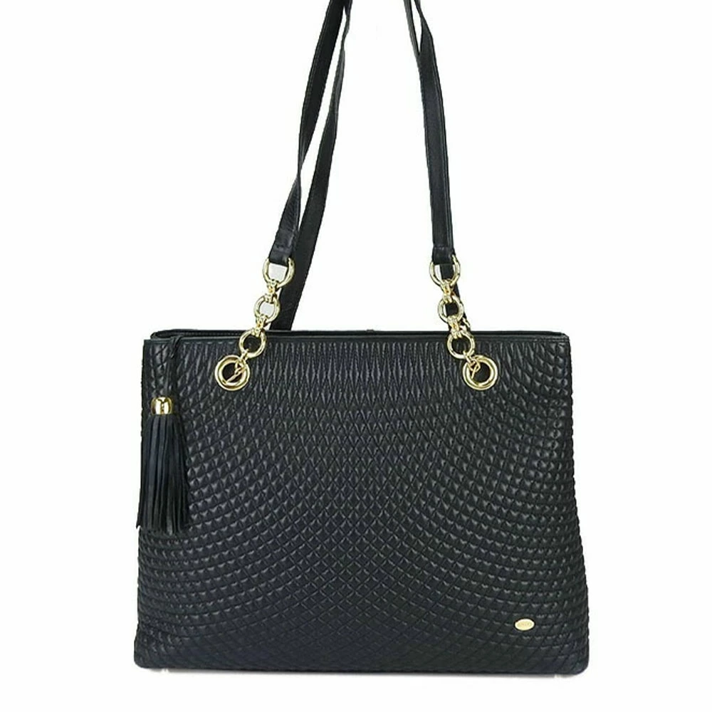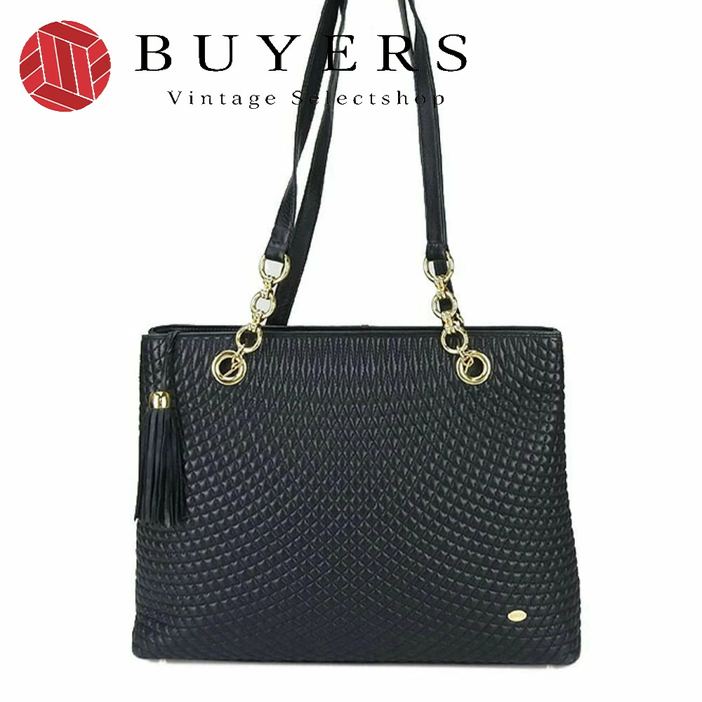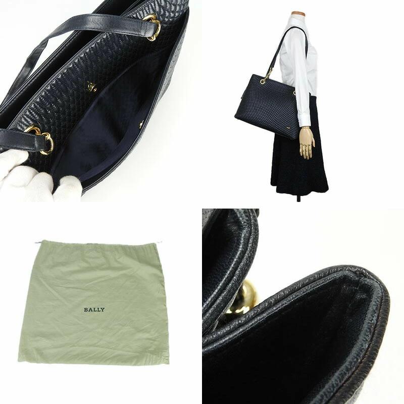 品名【中古】BALLY バリー チェーントートバッグ レザー フリンジ タッセルチャーム ブラック ネイビー系 濃紺 ゴールド金具 レディース 女性 肩掛け tote bag dark navy
