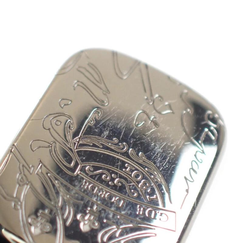 シンプルなレクタングルモチーフに、ブランドのアイコンであるカリグラフィーがデザインされたアクセサリー。