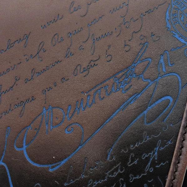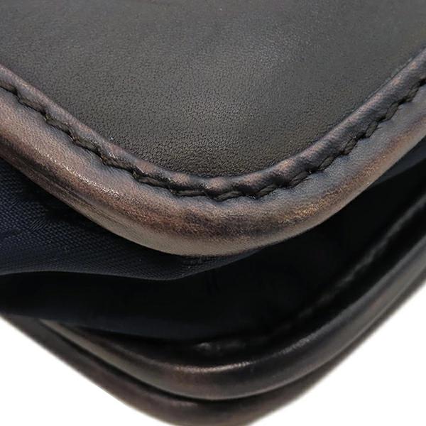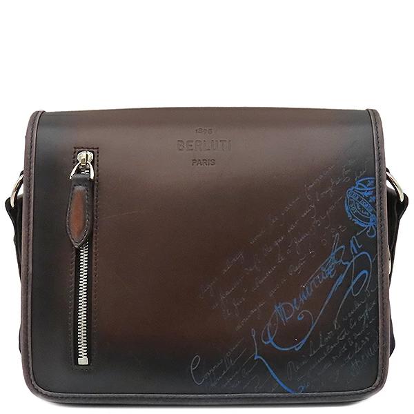 ベルルッティ BERLUTI ショルダーバッグ ラッキーデー スクリット カリグラフィ レザー ナイロン ブラウン×ブルー 茶 青 メッセンジャー 斜め掛け シルバー金具 メンズ定番 人気 美品 【中古】