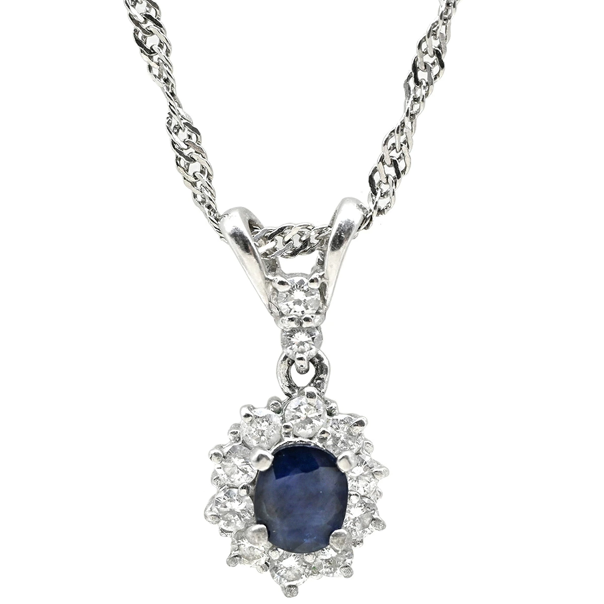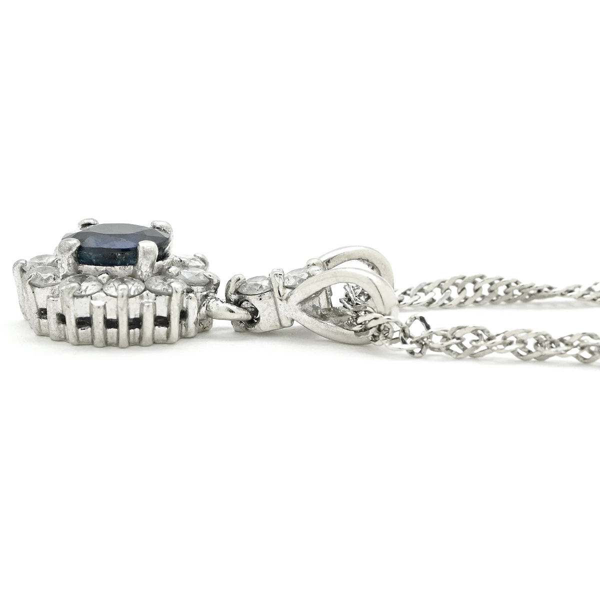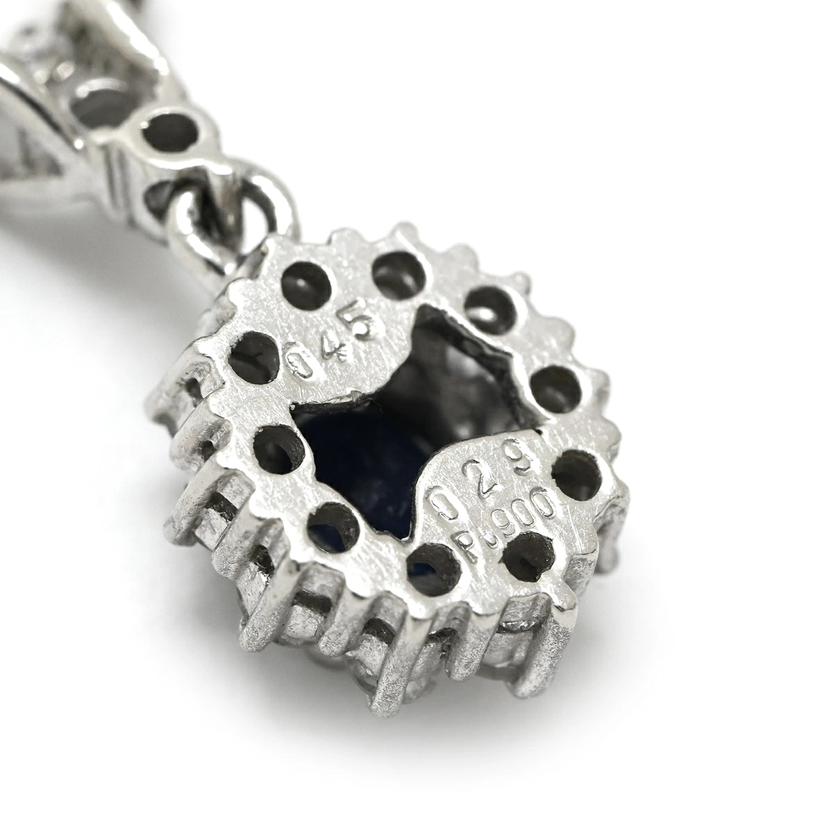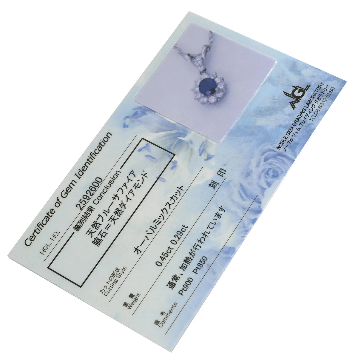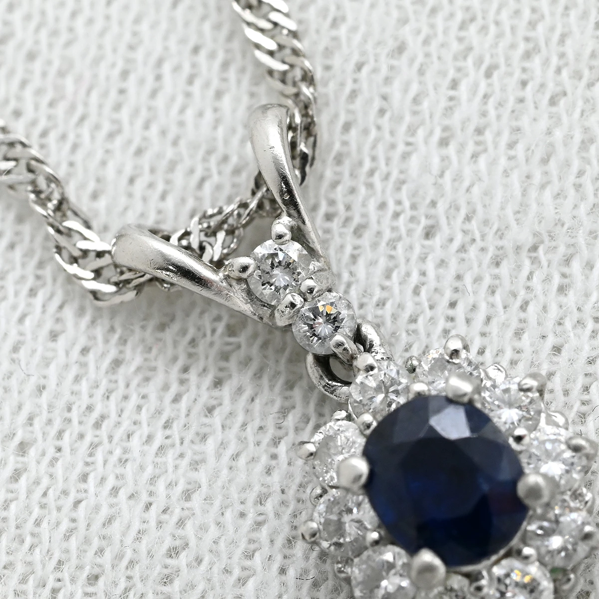ノンブランド NON BRAND ネックレス ブルーサファイア ダイヤ Pt900 サファイア ダイヤモンド Pt850(チェーン) ブルー×プラチナシルバー オーバルカット Pt900 プラチナム 青 メレ フラワーモチーフ ヘイロー スクリューチェーン - レディース定番 人気 美品 【中古】