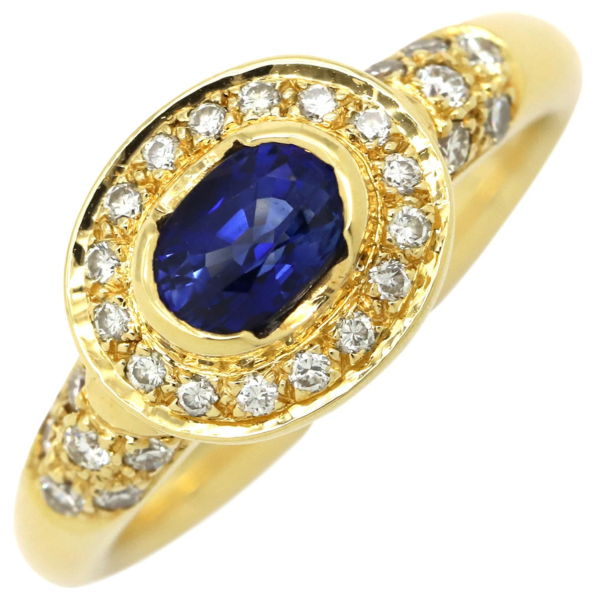 ノンブランド NON BRAND リング 指輪 ブルーサファイア ダイヤリング K18YG サファイア イエローゴールド 青 10.5号 レディース定番 人気 美品 【中古】