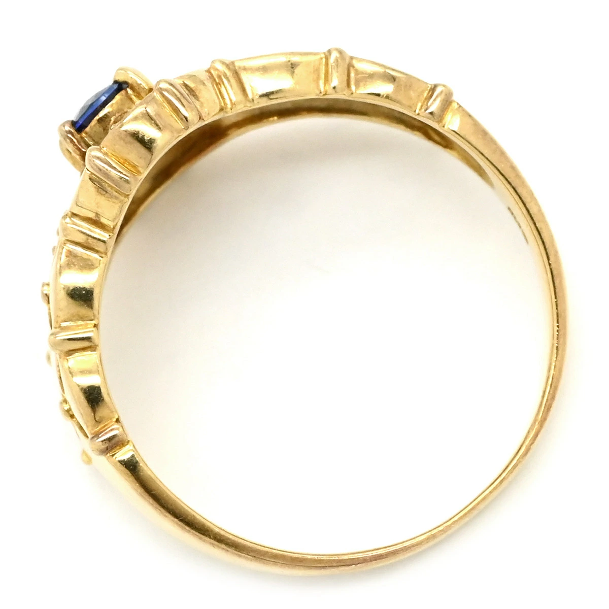 Pre-owned blue sapphire and diamond ring in 18K yellow gold with sapphire and diamonds, size 11.