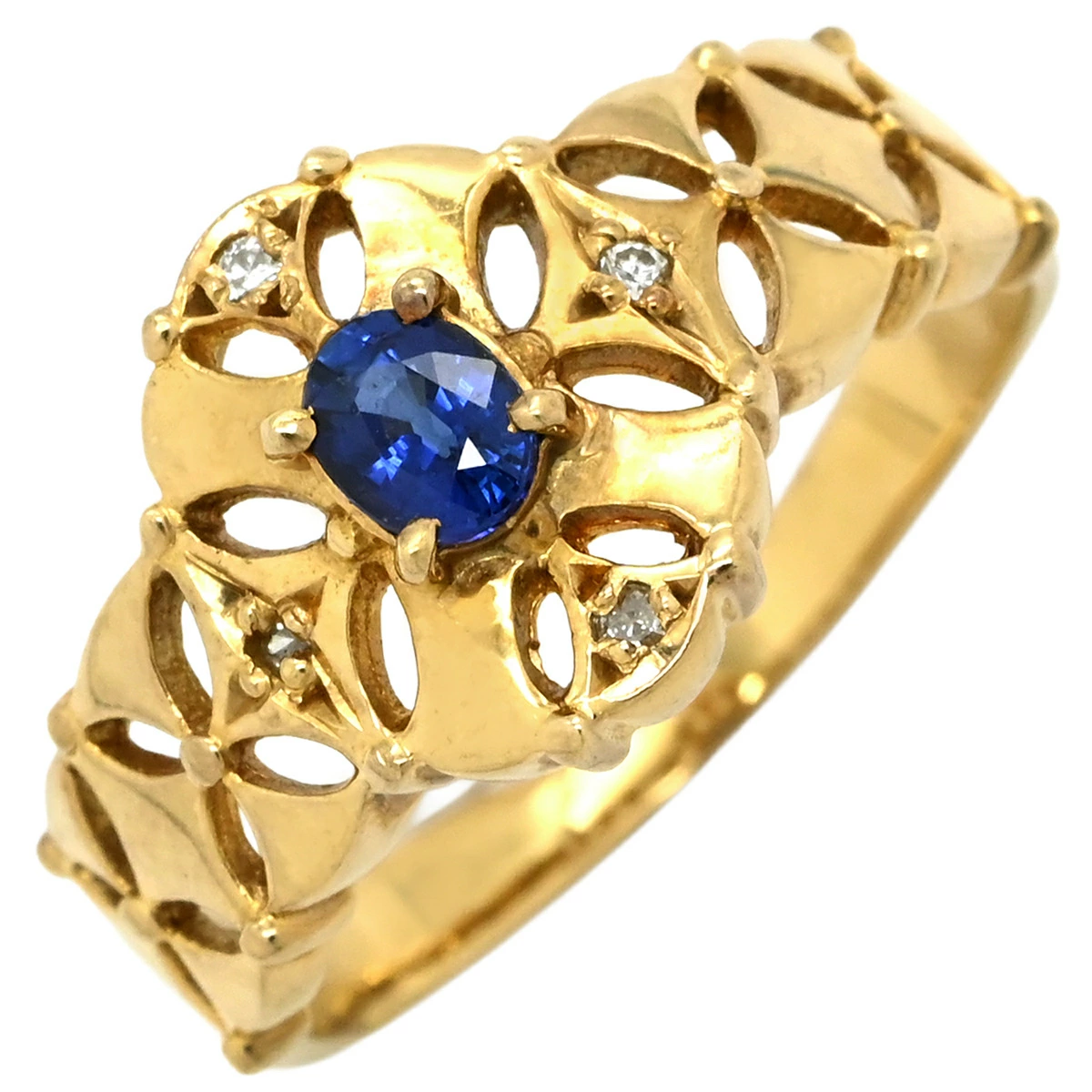 ノンブランド NON BRAND リング 指輪 ブルーサファイア ダイヤリング K18YG サファイア ダイヤモンド イエローゴールド 青 18K 750 YG 11号 レディース 【中古】