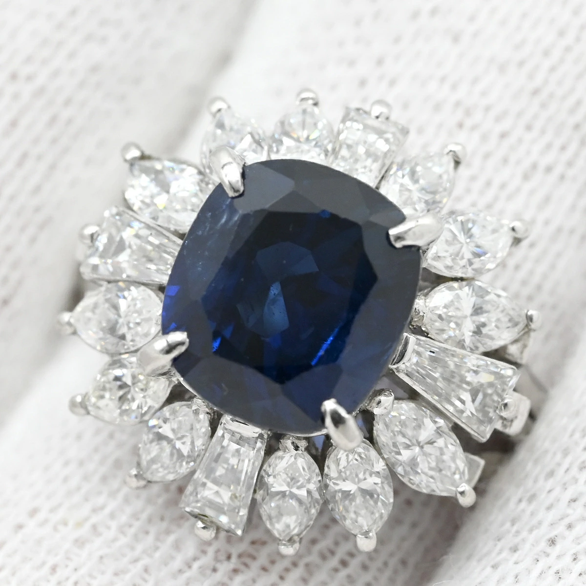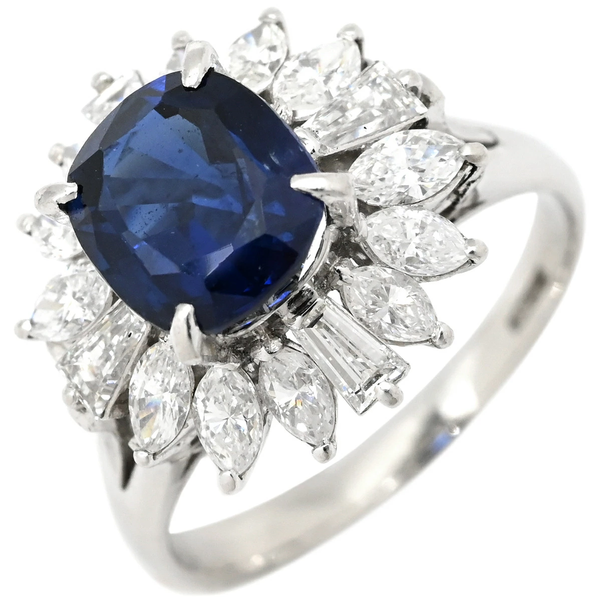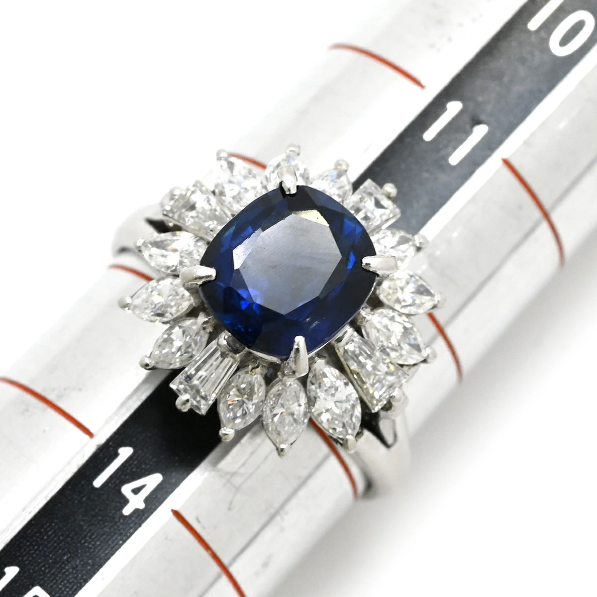 ノンブランド NON BRAND リング 指輪 ブルーサファイア ダイヤ Pt900 サファイア ダイヤモンド ブルー×プラチナシルバー クッションカット Pt900 プラチナム 青 マーキス バゲットカット フラワーモチーフ - 13号 レディース定番 人気 美品 【中古】