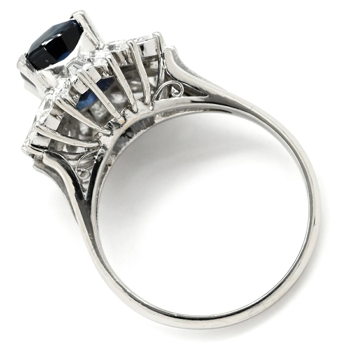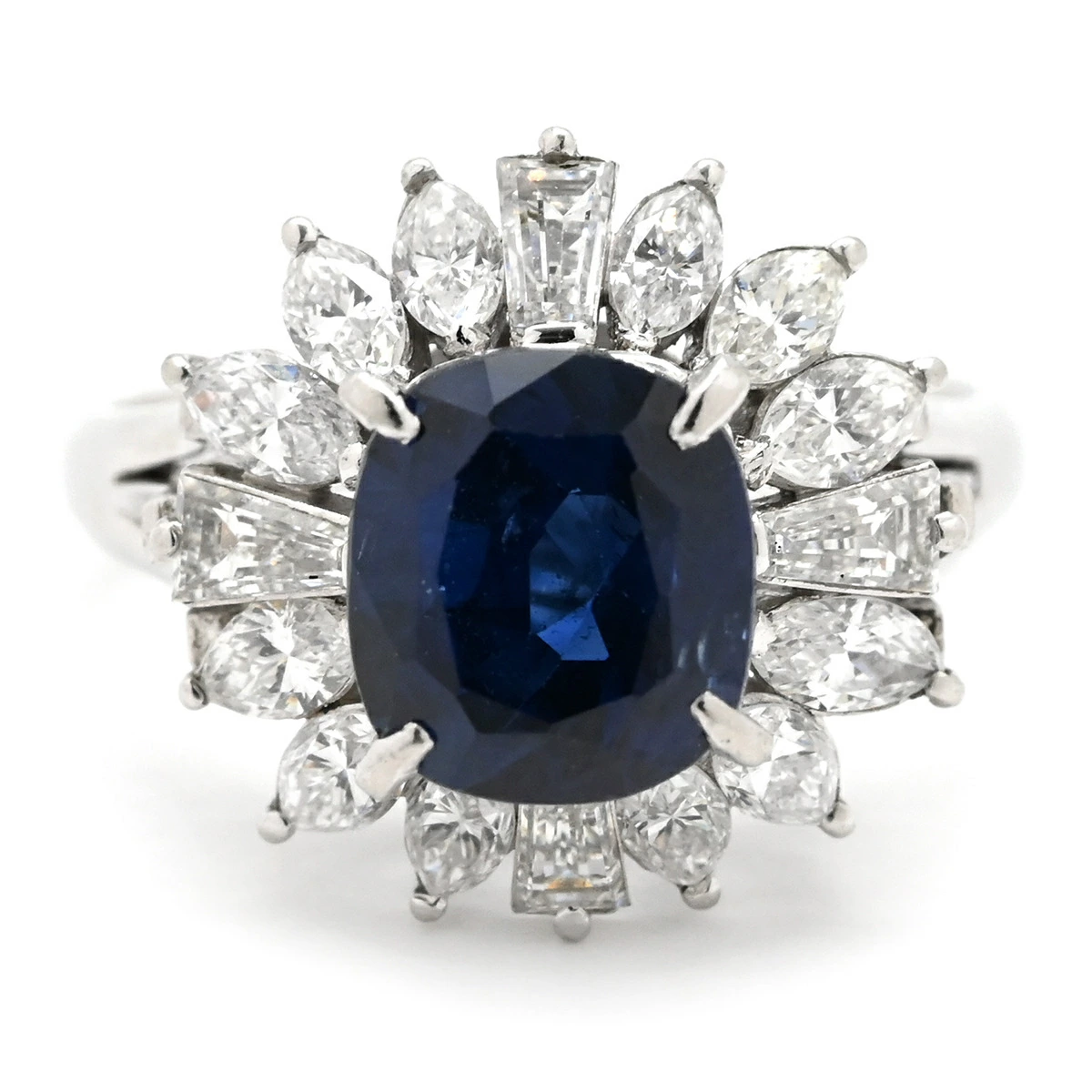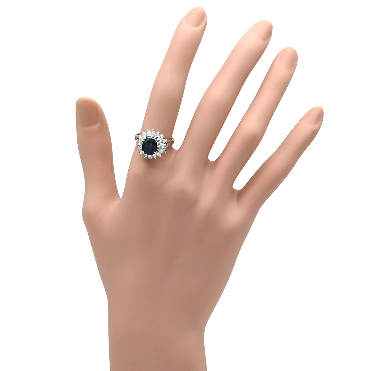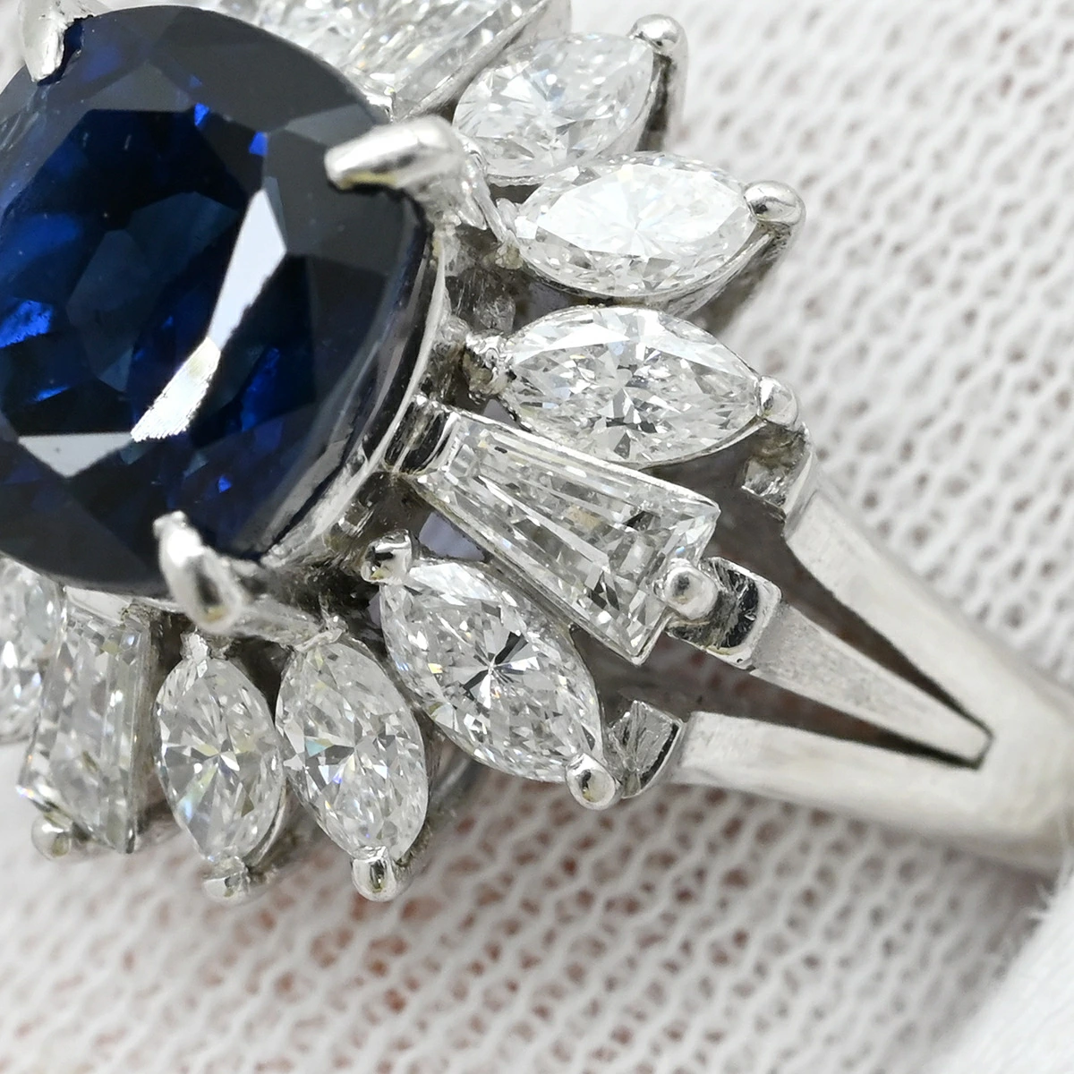 ノンブランド NON BRAND リング 指輪 ブルーサファイア ダイヤ Pt900 サファイア ダイヤモンド ブルー×プラチナシルバー クッションカット Pt900 プラチナム 青 マーキス バゲットカット フラワーモチーフ - 13号 レディース定番 人気 美品 【中古】