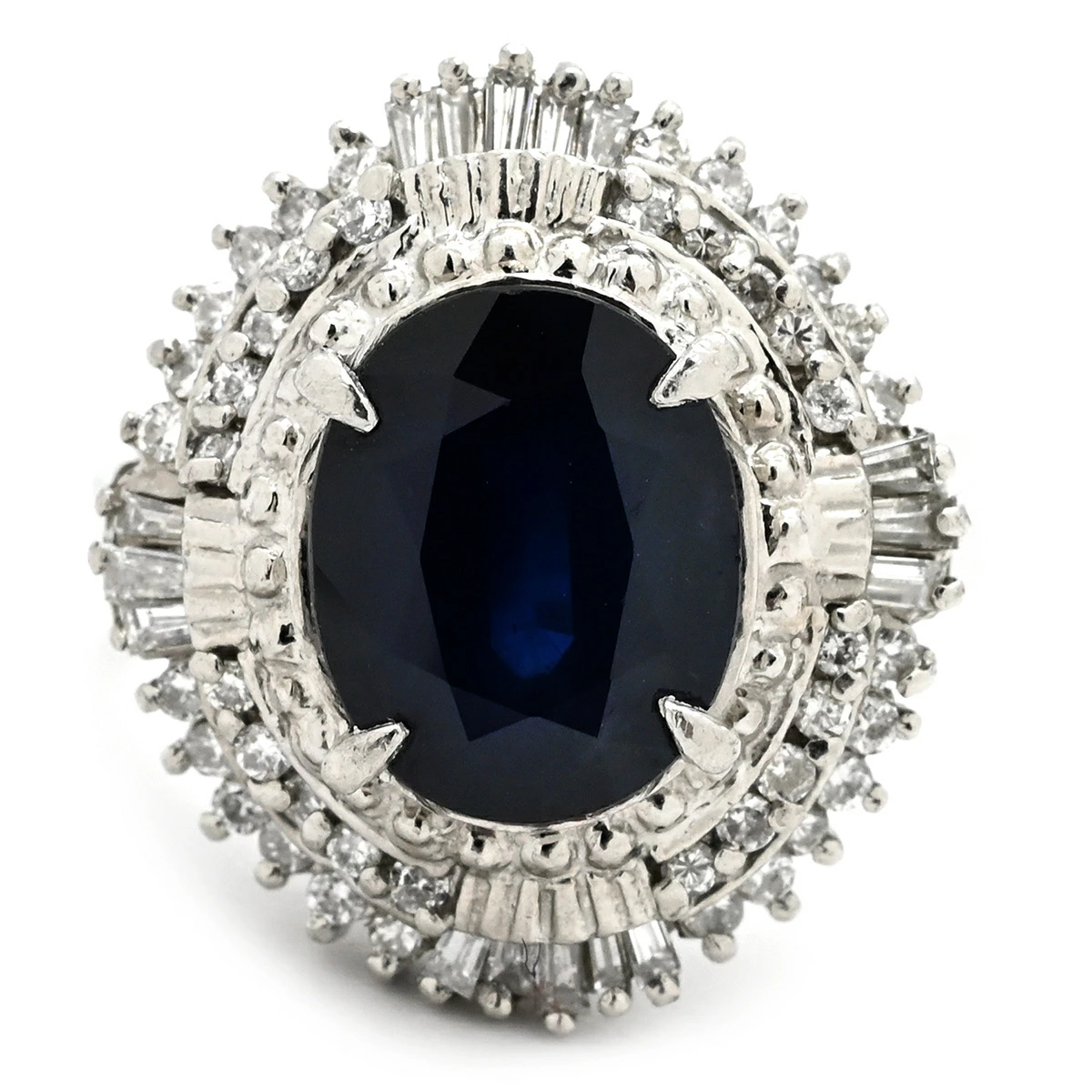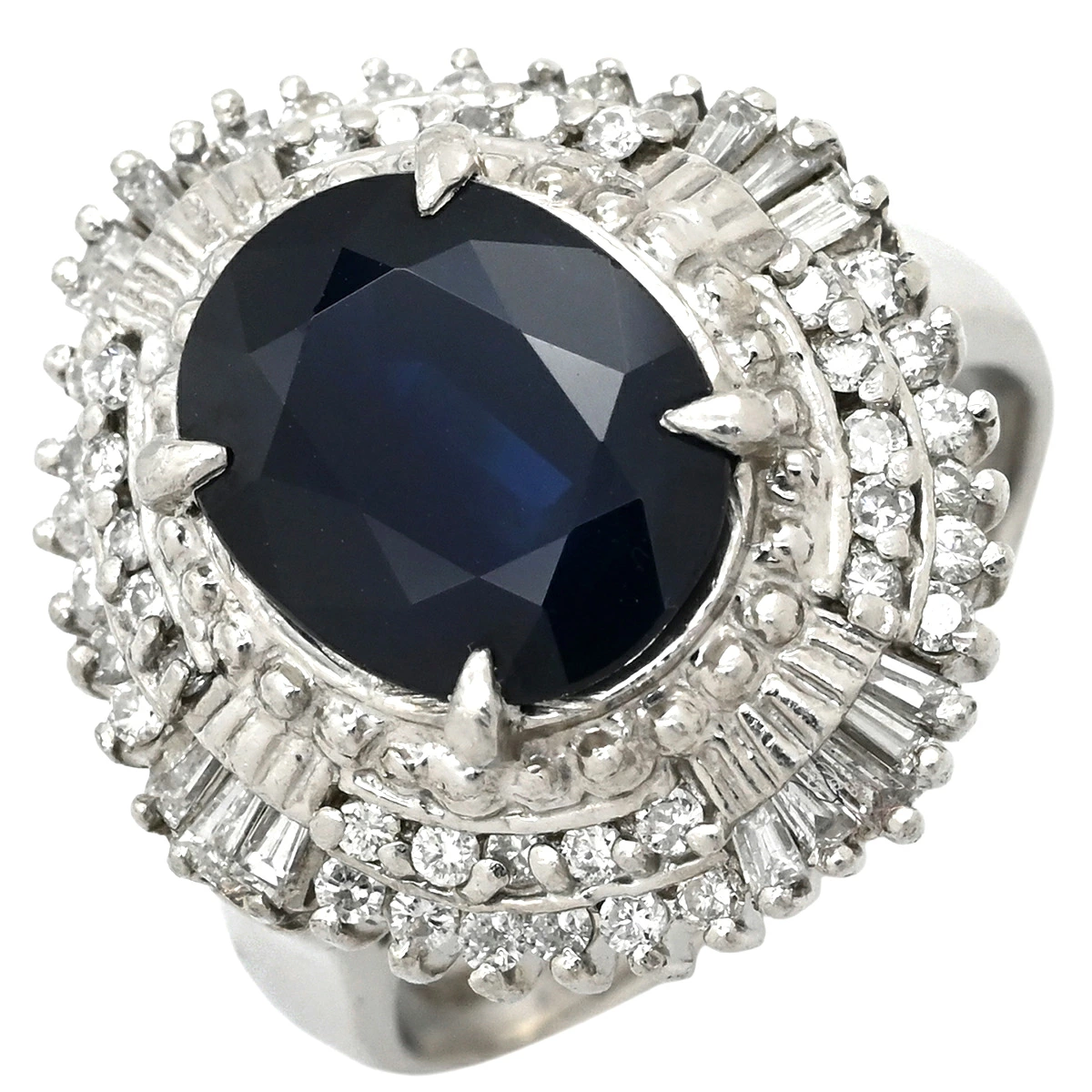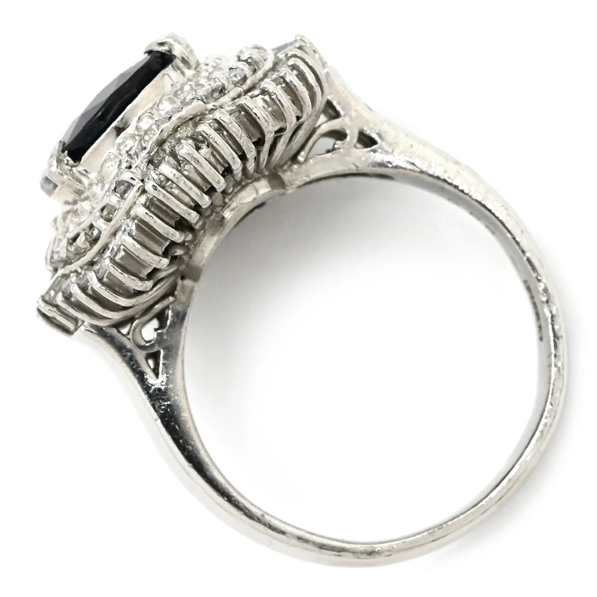 ノンブランド NON BRAND リング 指輪 ブルーサファイア ダイヤ リング Pt900 サファイア ダイヤモンド ブルー×プラチナシルバー 青 パヴェダイヤ オーバル プラチナム - 10号 レディース 【中古】