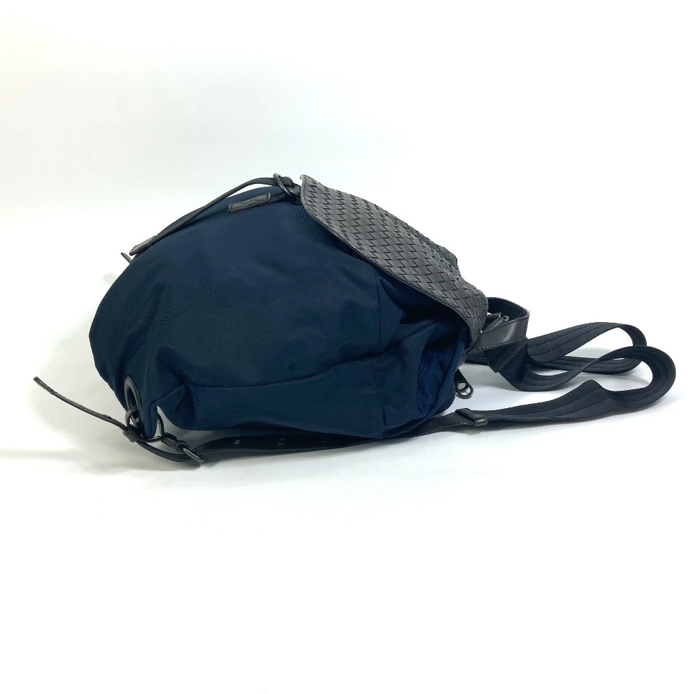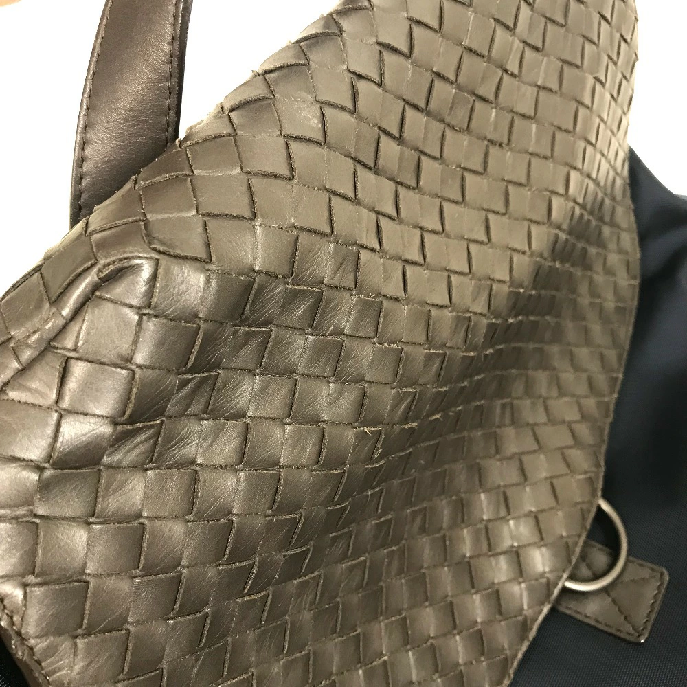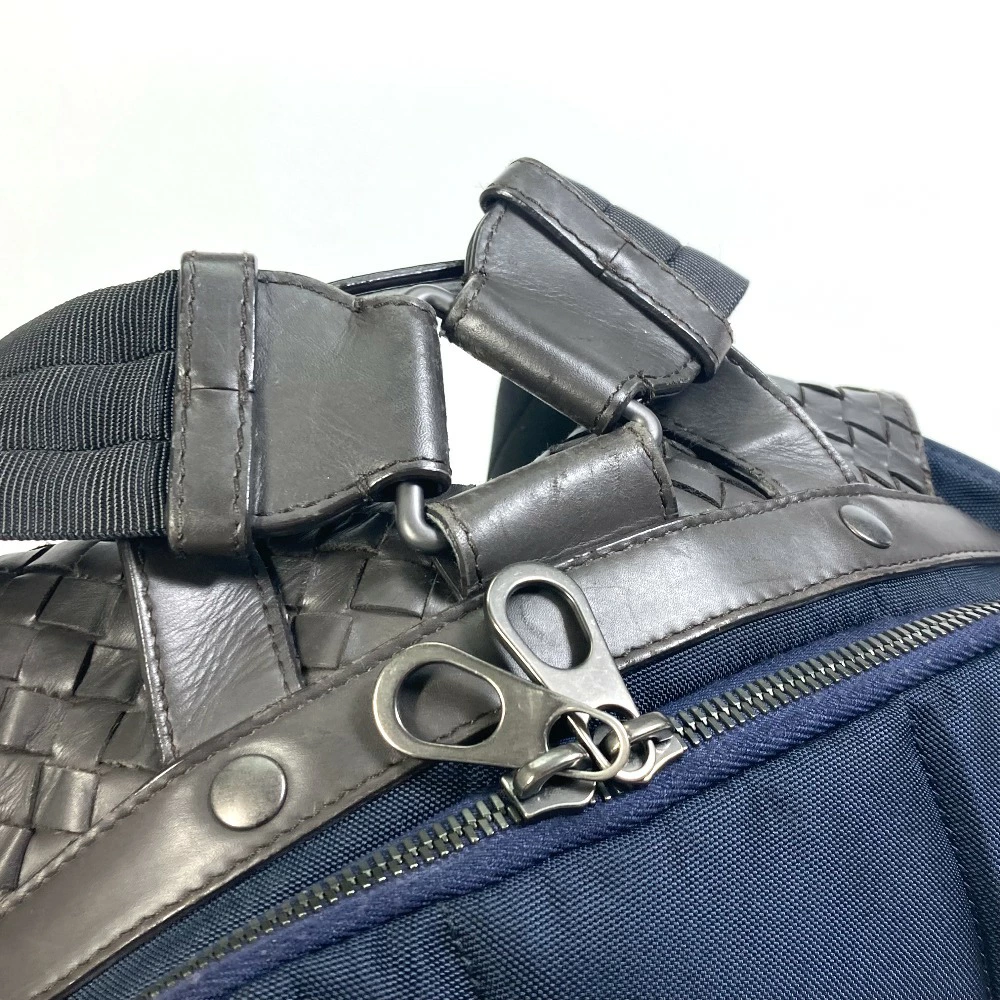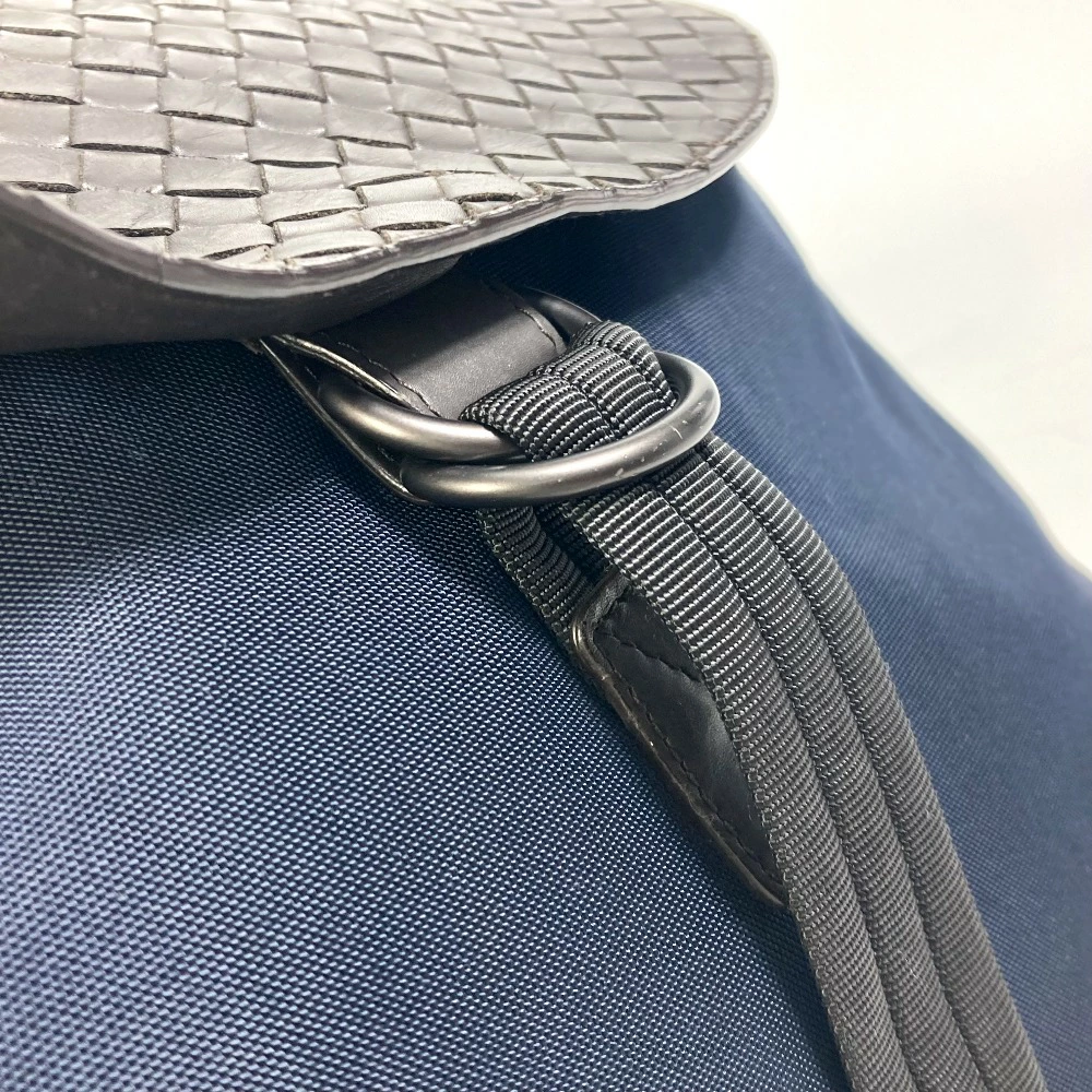 Pre-owned BOTTEGA VENETA 409595 Intrecciato Backpack in Nylon/Leather, Navy and Brown.