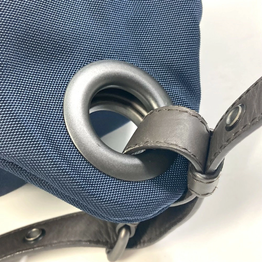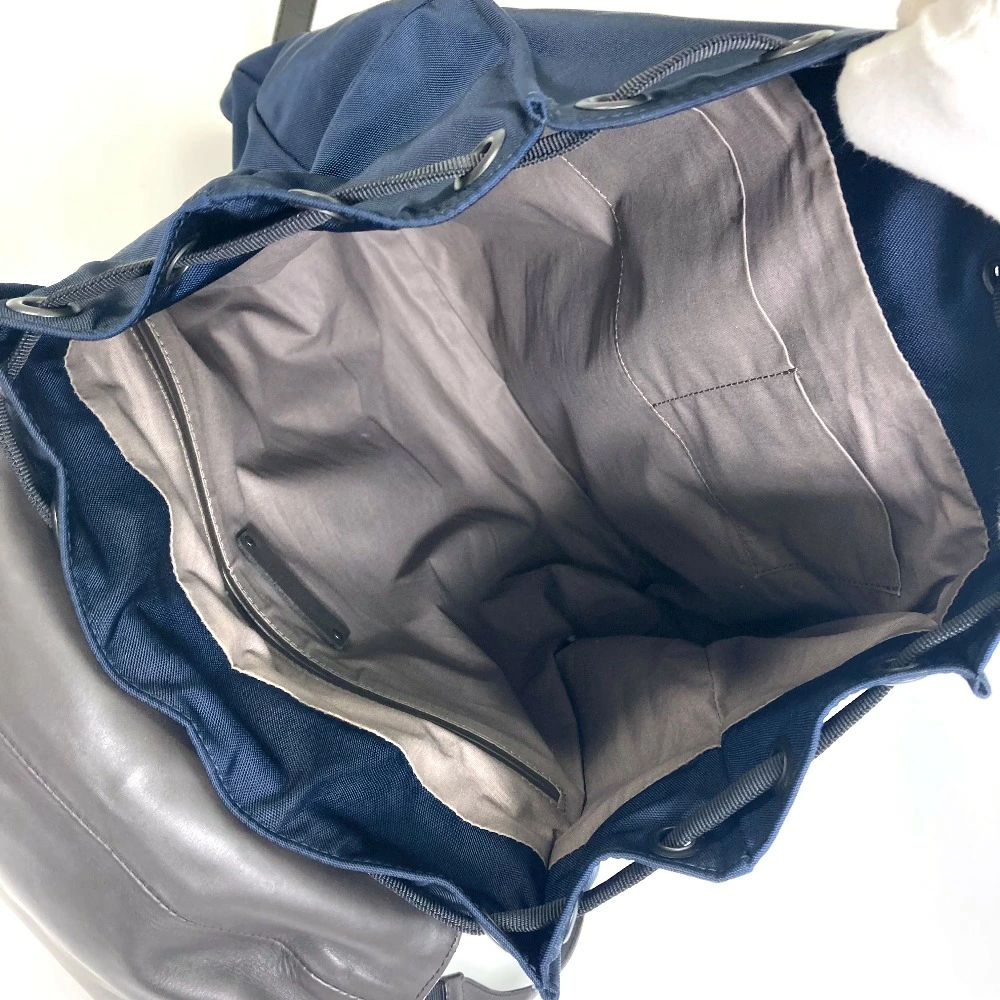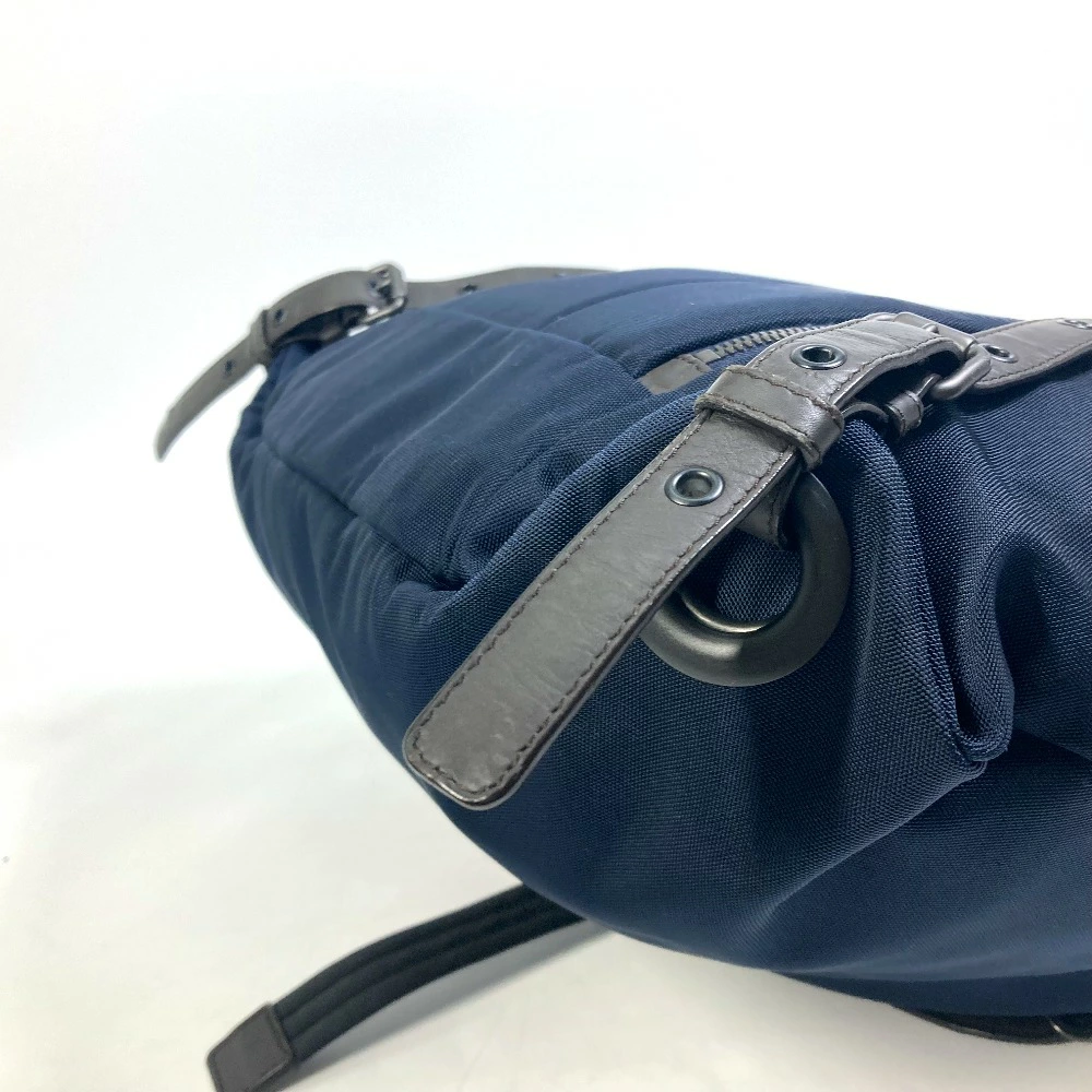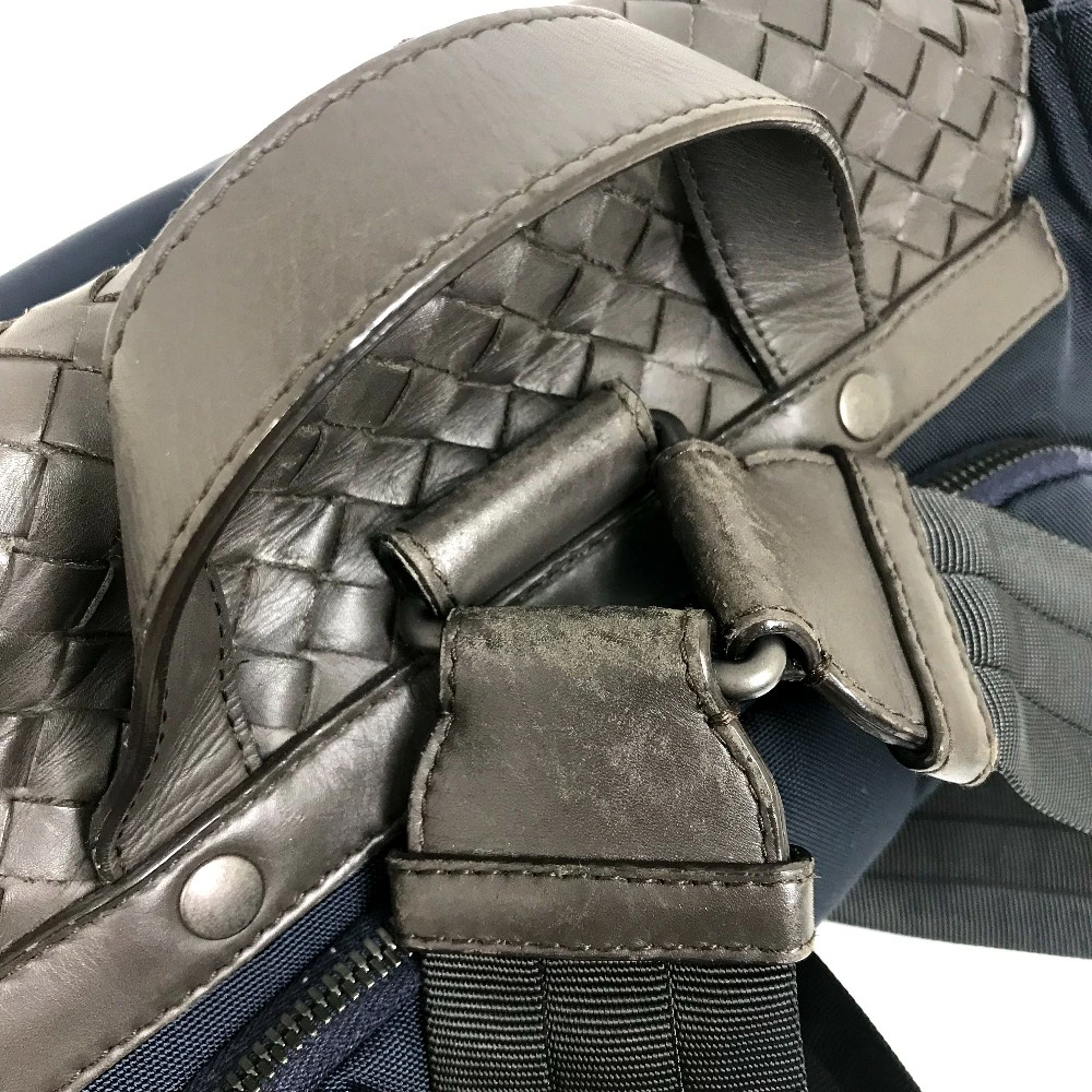 Pre-owned BOTTEGA VENETA 409595 Intrecciato Backpack in Nylon/Leather, Navy and Brown.