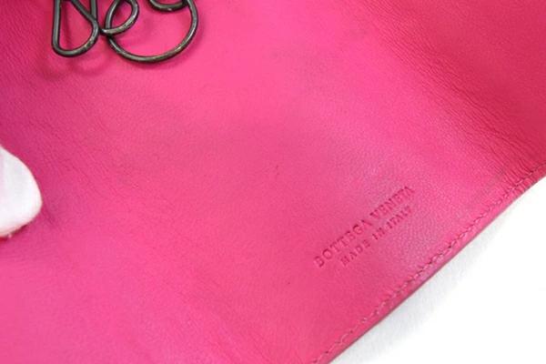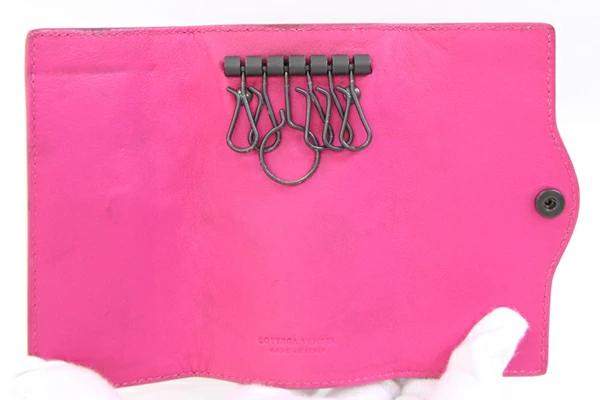 ボッテガヴェネタ6連キーケースイントレチャート284137ピンクレザー中古キー鍵編み込みレディースBOTTEGAVENETA