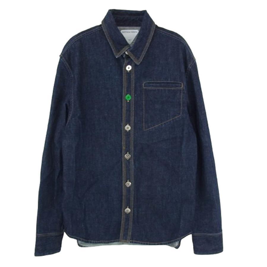 インディゴブルー系【モデル】メタルボタン コントラストボタン 変形ポケット デニムシャツ ジャケット