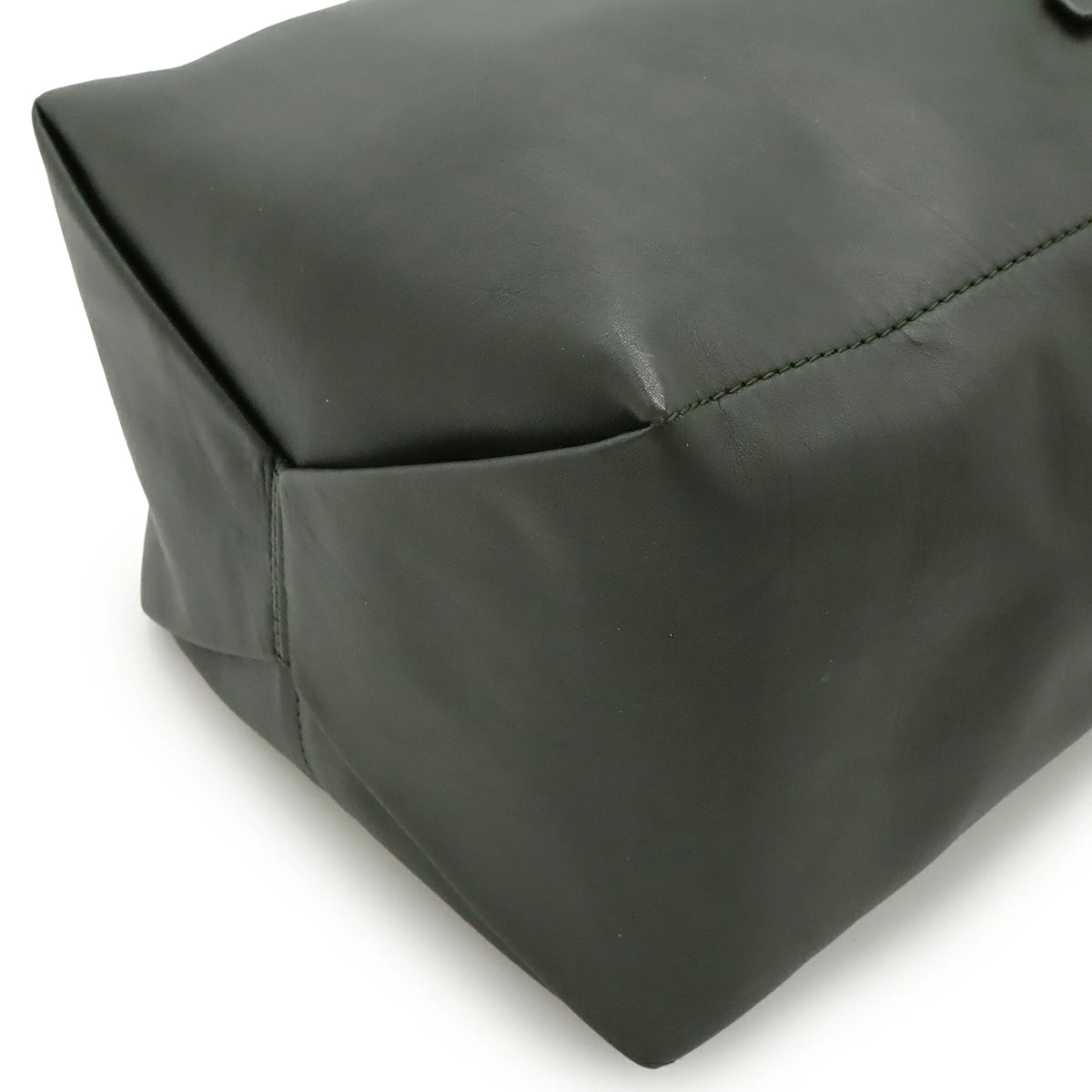 なめらかで上質なレザーと軽量なナイロン素材を使用した巾着型のシンプルなショルダーバッグでございます。