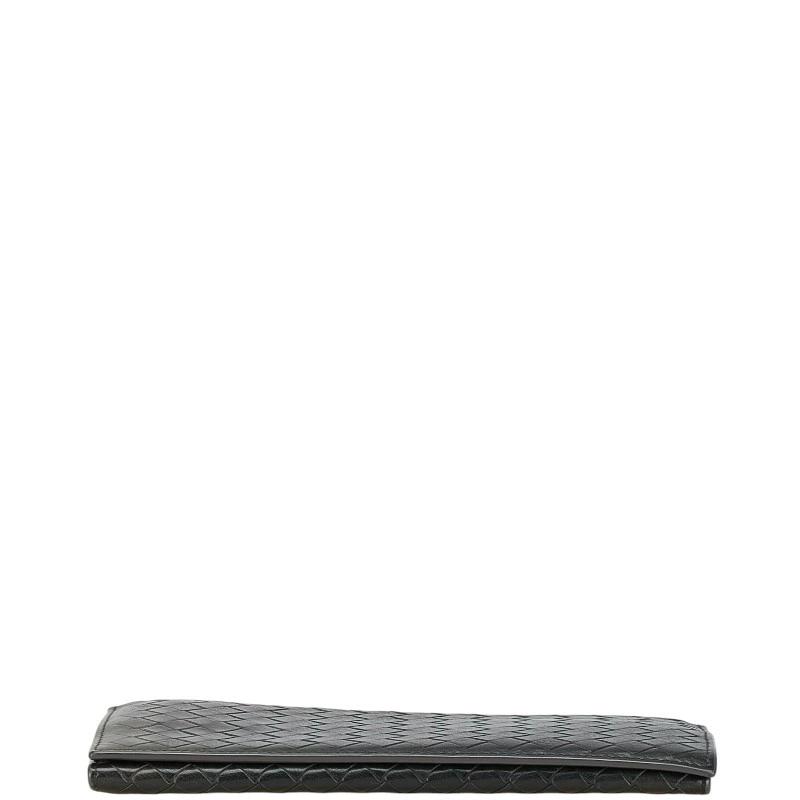 Pre-owned Bottega Veneta Intrecciato Bi-fold Wallet, Black/Grey Leather, Women's
