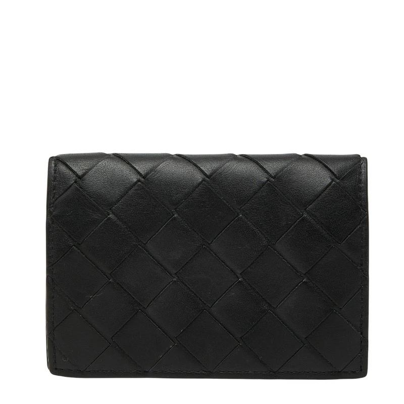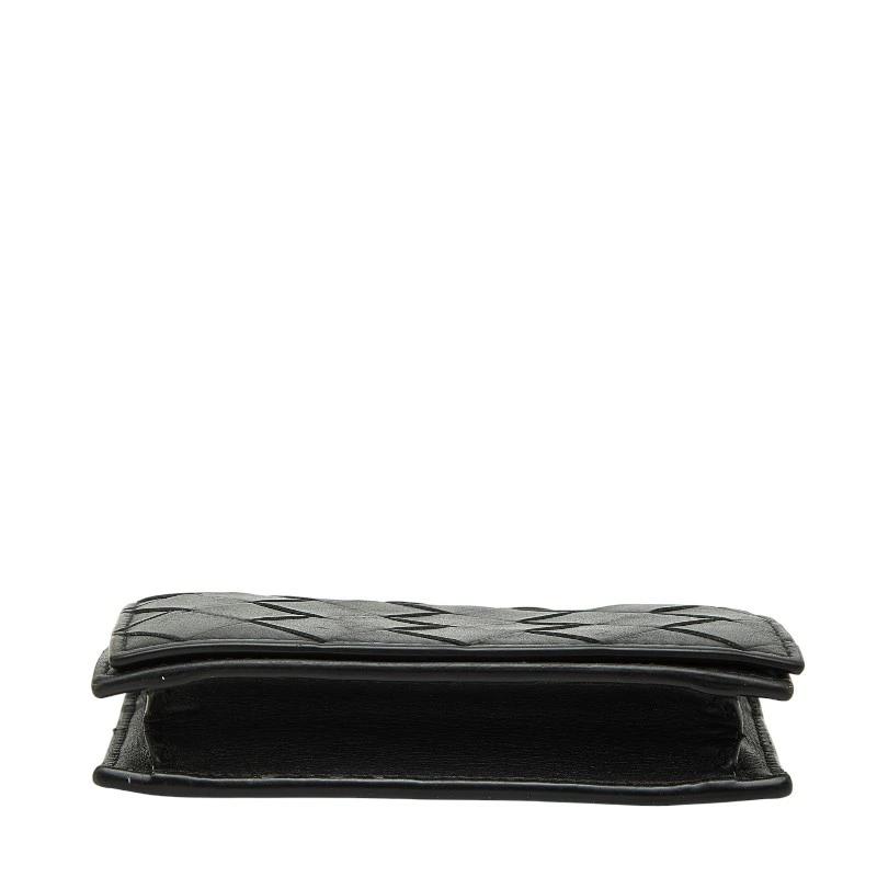 - ボッテガヴェネタ イントレチャート カードケース パスケース ブラック レザー メンズ BOTTEGAVENETA 【中古】