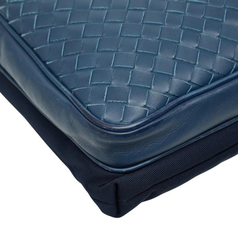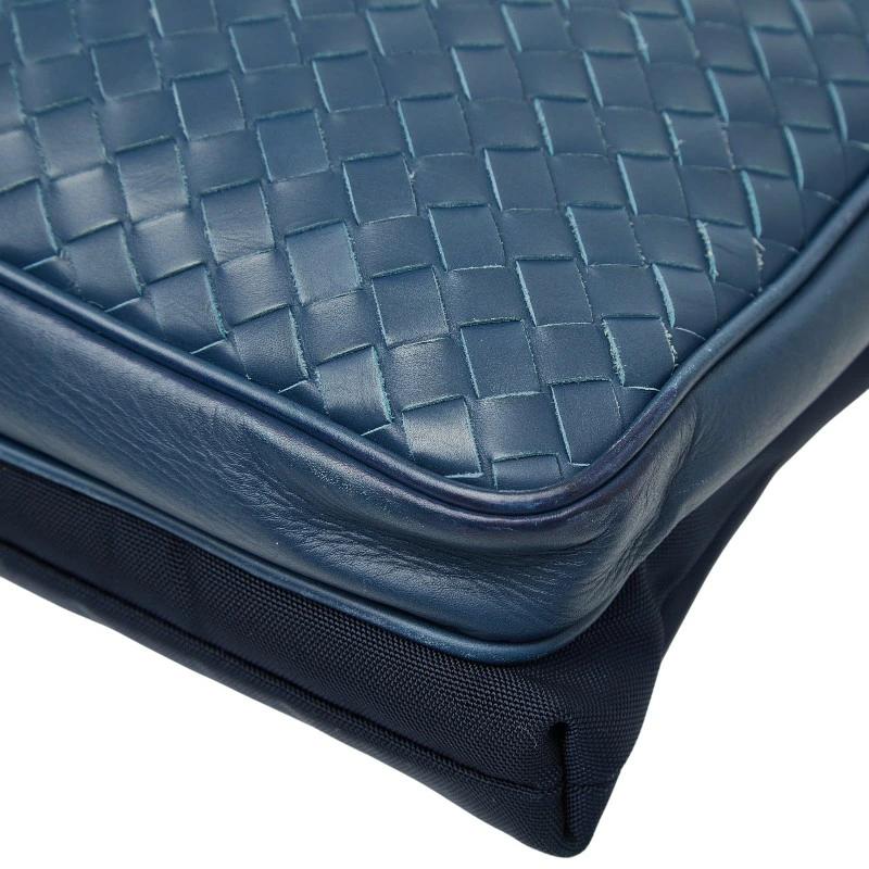 - ボッテガヴェネタ イントレチャート 斜め掛け ショルダーバッグ ブルー ネイビー レザー ナイロン レディース BOTTEGAVENETA 【中古】