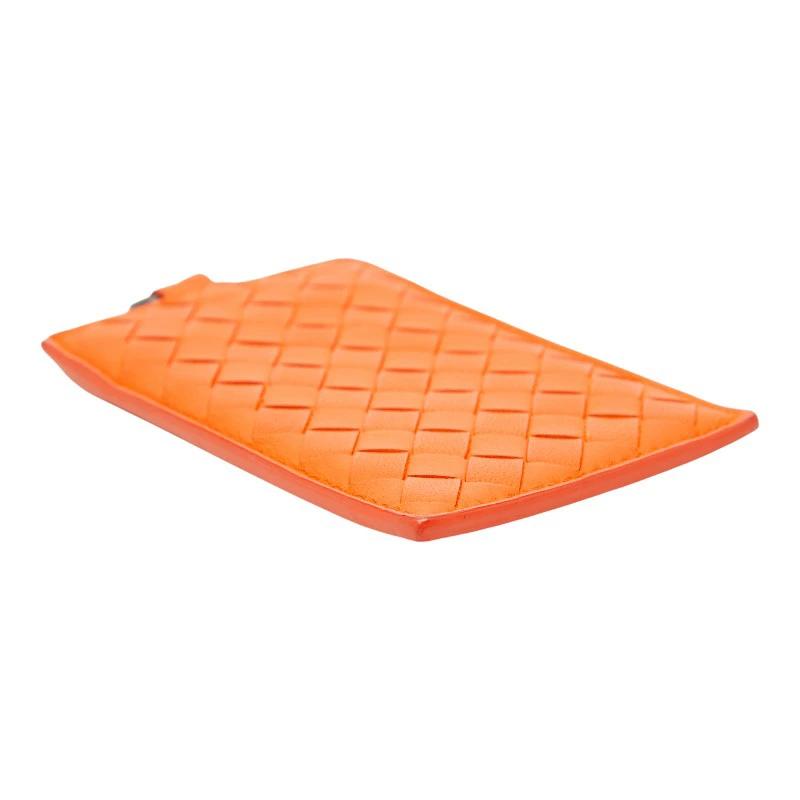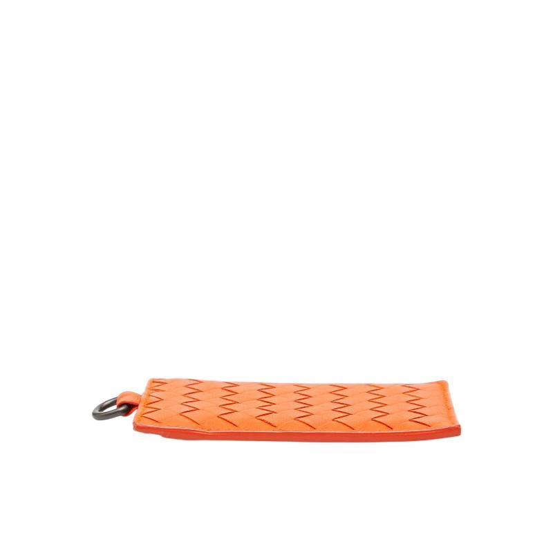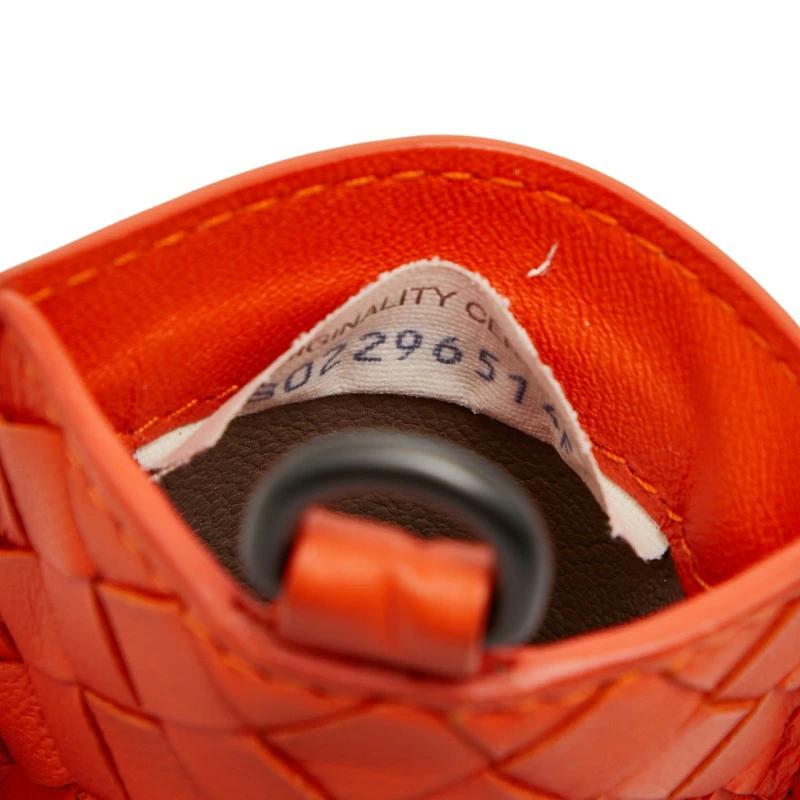 Pre-owned Bottega Veneta Intrecciato Pass Case, Orange Leather, Women's