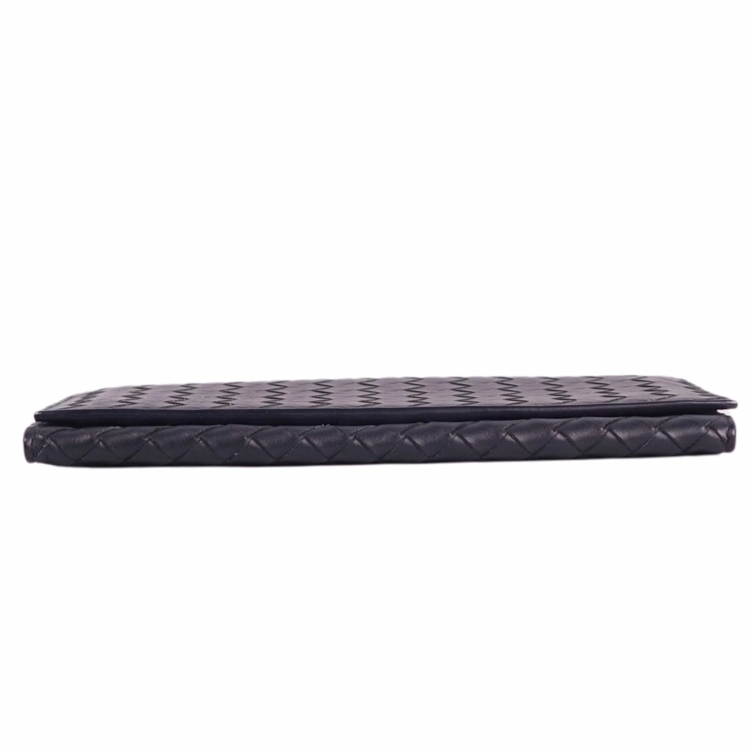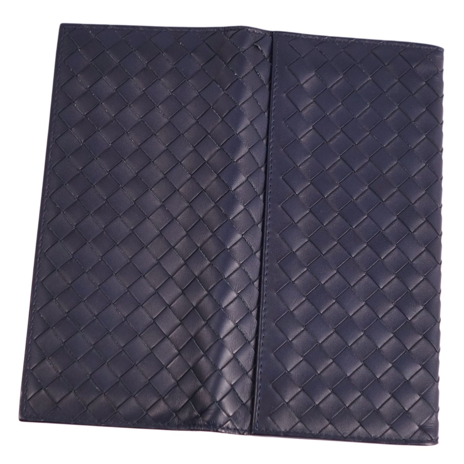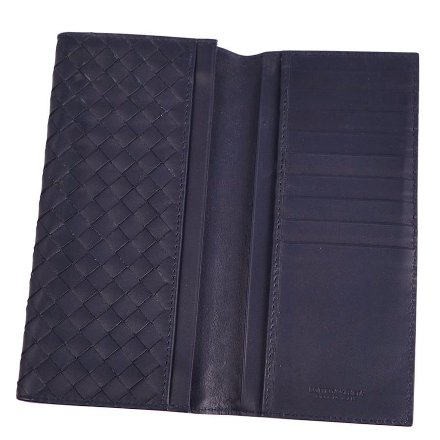 Pre-owned Bottega Veneta Men's Long Wallet in Intrecciato Leather, Made in Italy, Navy Blue. Excellent Condition.
