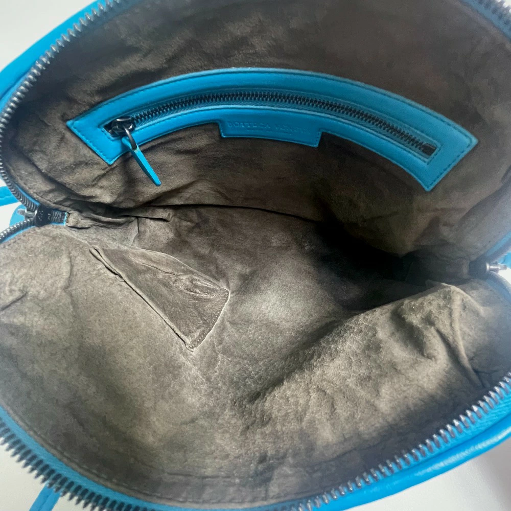 Pre-owned BOTTEGA VENETA Nodini Intrecciato Lamb Leather Shoulder Bag, Blue, 245354