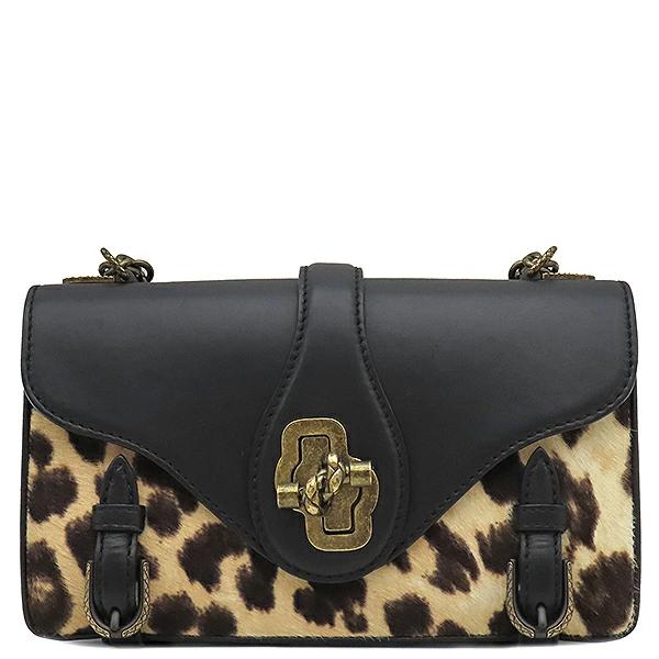ボッテガヴェネタ BOTTEGA VENETA ショルダーバッグ ハラコ レザー ハラコ ブラックXブラウン 黒 チェーンショルダー ヴィンテージ金具 メンズ レディース ユニセックス 【保存袋】 【中古】