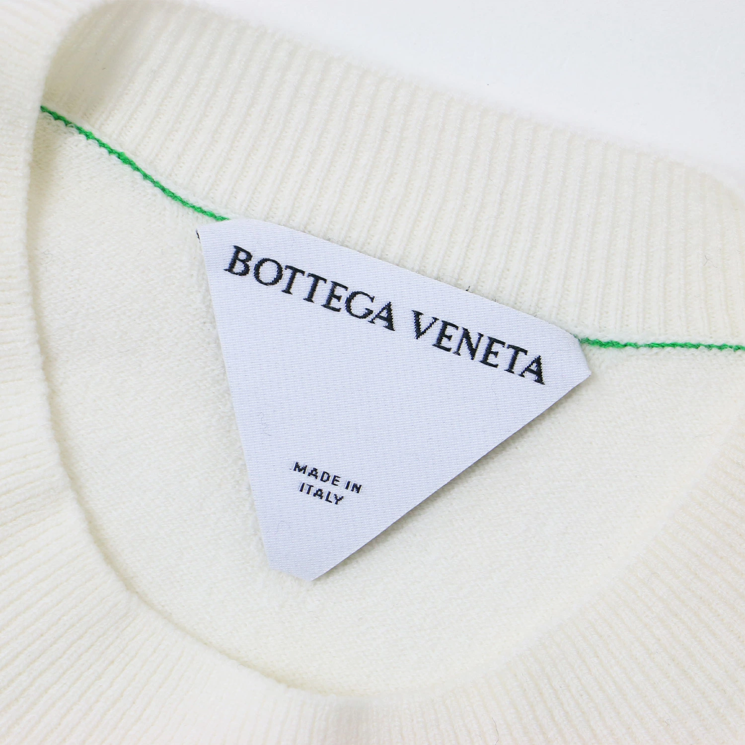 Pre-owned BOTTEGA VENETA women's wool crew neck pullover sweater, size S, off-white, long sleeves, made in Italy. [K4616]