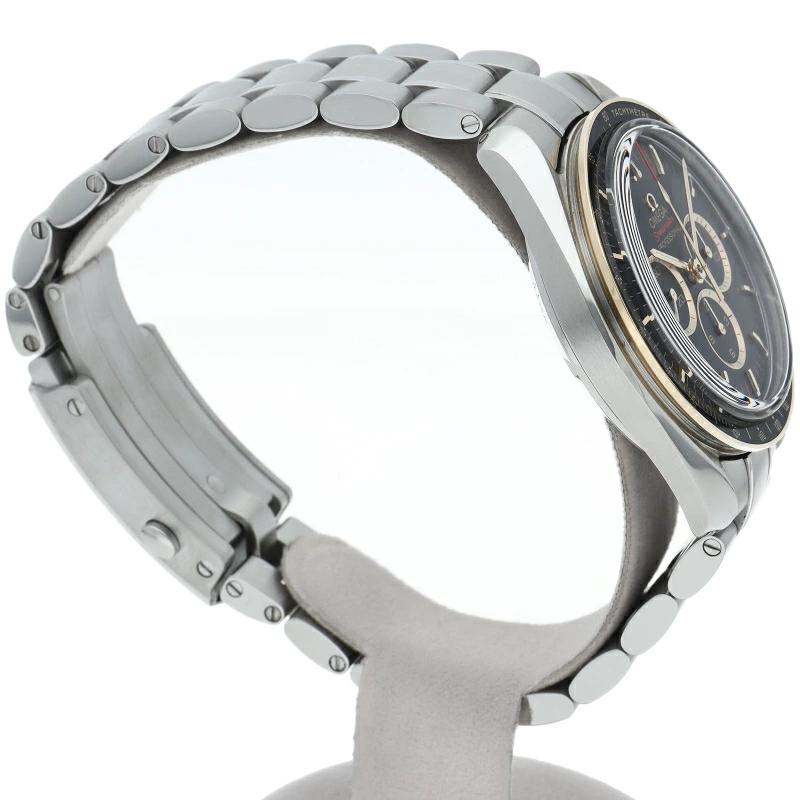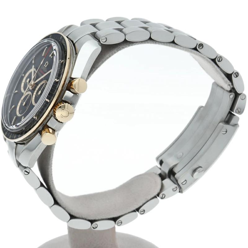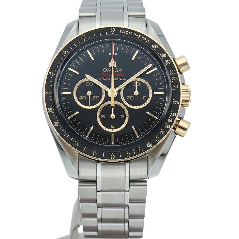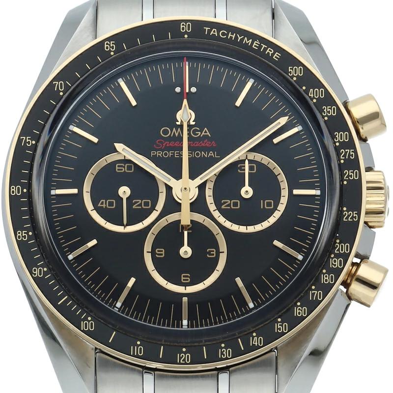 | 2020年オリンピック 東京大会の開催まで2年を切ったこと祝し、大会のオフィシャルタイムキーパーであるオメガは、2,020本限定の「スピードマスター」を製作しました。18Kイエローゴールドは、オメガのロゴ、針、面取りを施したアプライドインデックス、ブラックのダイアルに配された3つのサブダイアルのリングにも使用されています。ミニッツトラックもイエローゴールドカラーです。 |