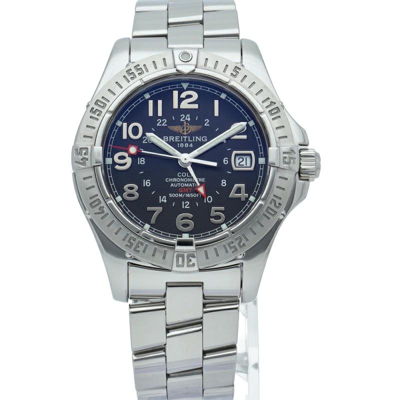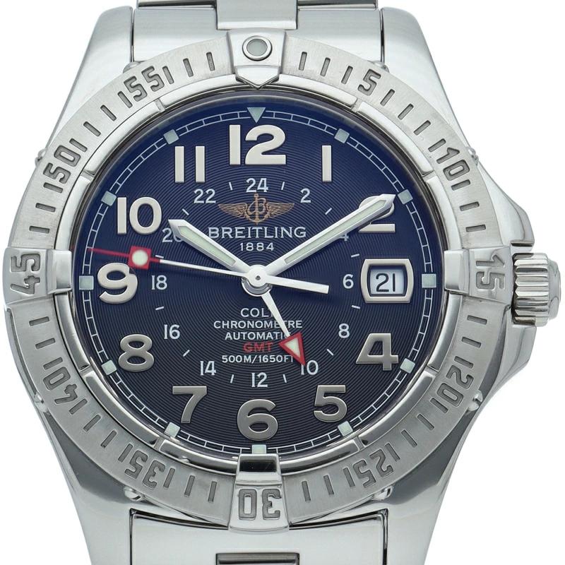 | 500mの防水性能を備えたブライトリングの人気モデルのエアロマリン コルトにGMTが搭載されたモデルです。高い性能や回転ベゼルなど充実の高スペックを搭載しながらも、大変リーズナブルな価格でエントリーウォッチとして人気の高いモデルです。 |