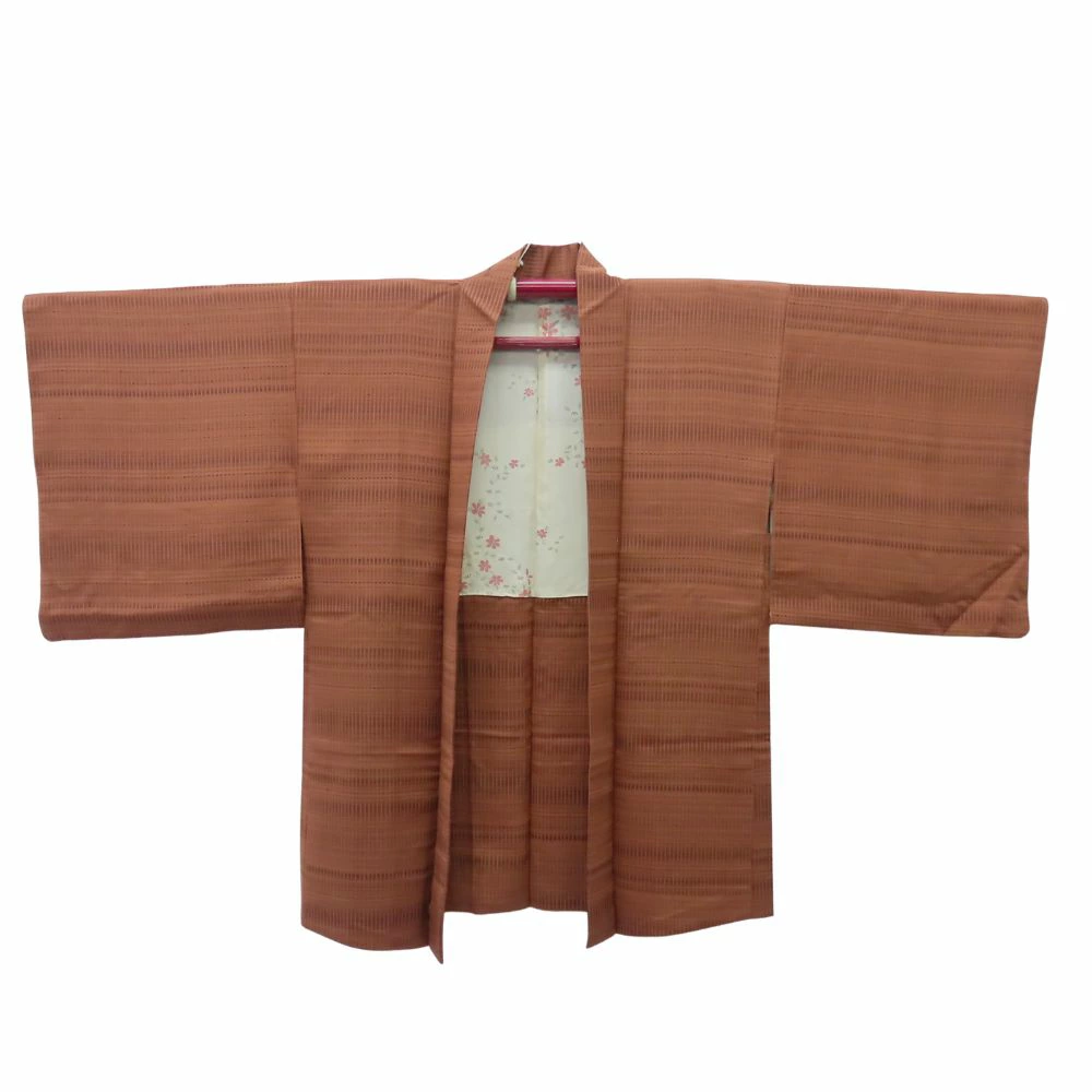 [Pre-owned] Brown Silk Haori with Floral Pattern, Stylish Kimono for Women