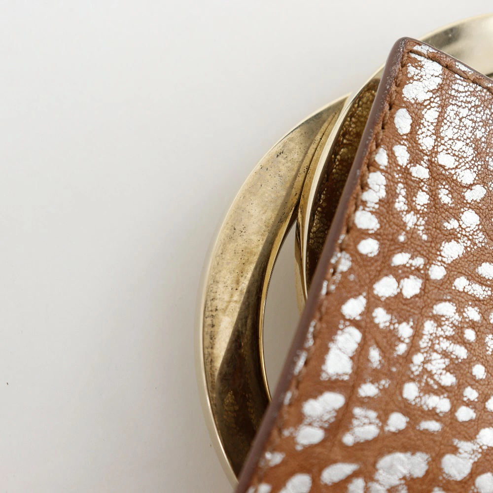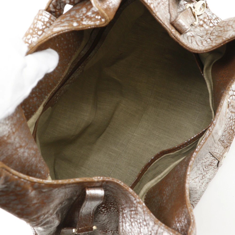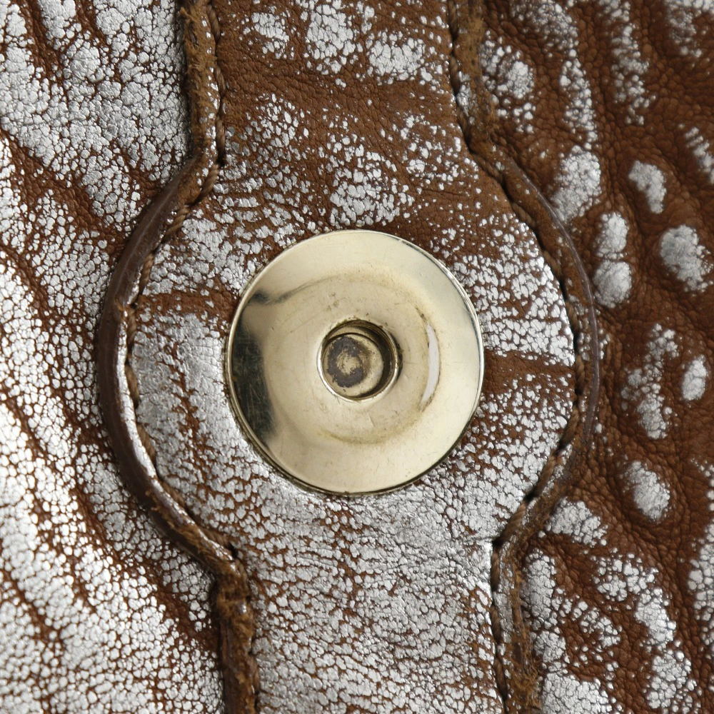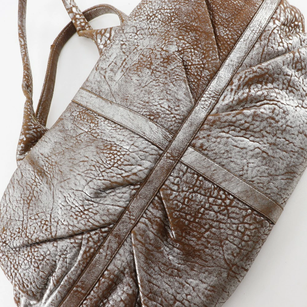 Pre-owned Bulgari Chandra leather tote bag in silver/brown, shoulder/handbag style, A5 size, with magnetic closure.