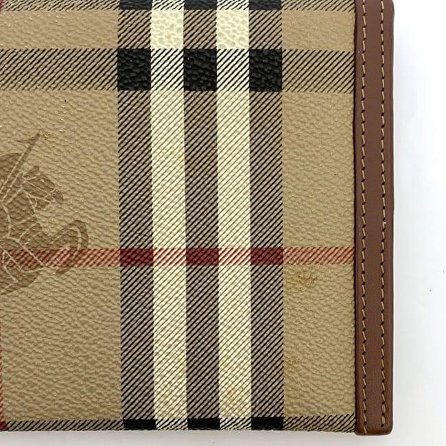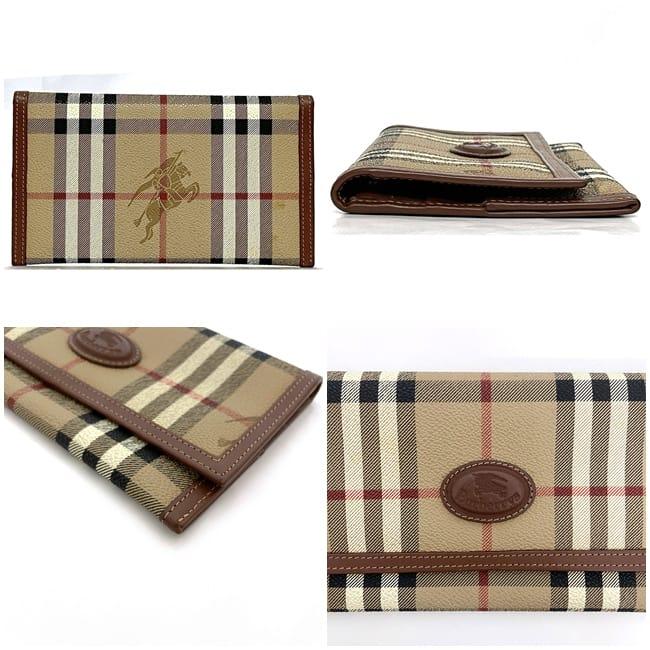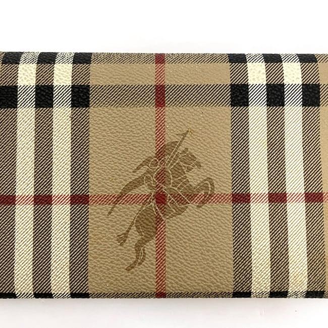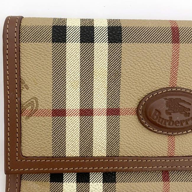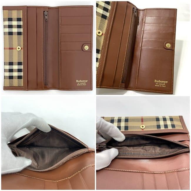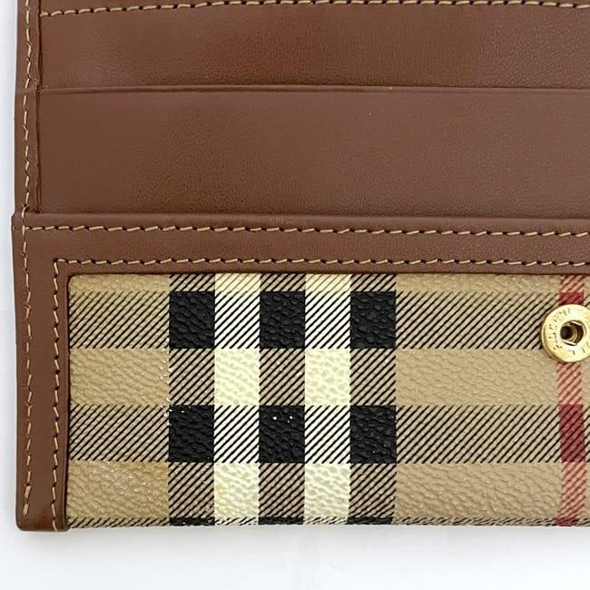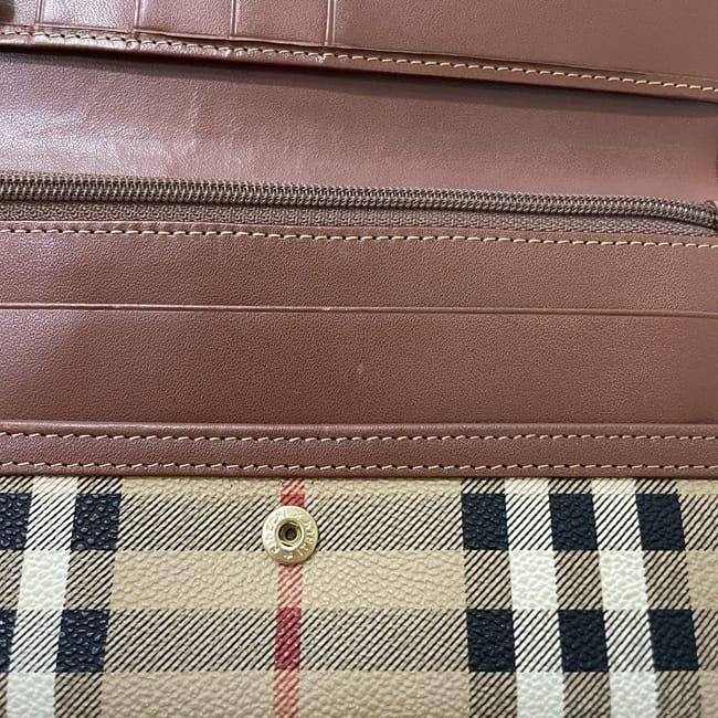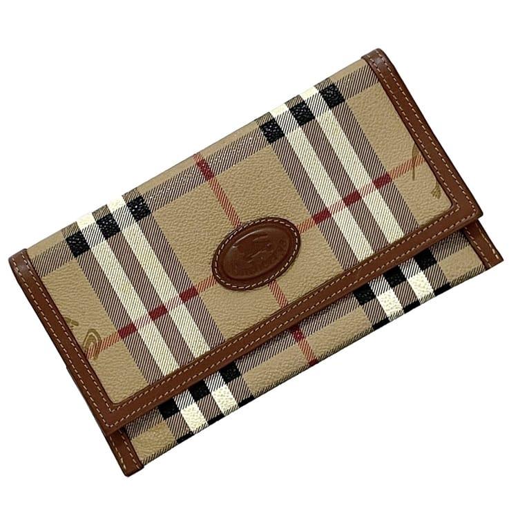 バーバリー 二つ折り 長財布 ec-23858 ベージュ ブラウン チェック 財布 美品 PVC レザー 中古 Burberrys ノバチェック ロゴ ヴィンテージ 定番 人気 女性 レディース お洒落 チャック柄 革 レトロ ロング ウォレット 小物 高級感 上品 ブランド 本物 鑑定済み