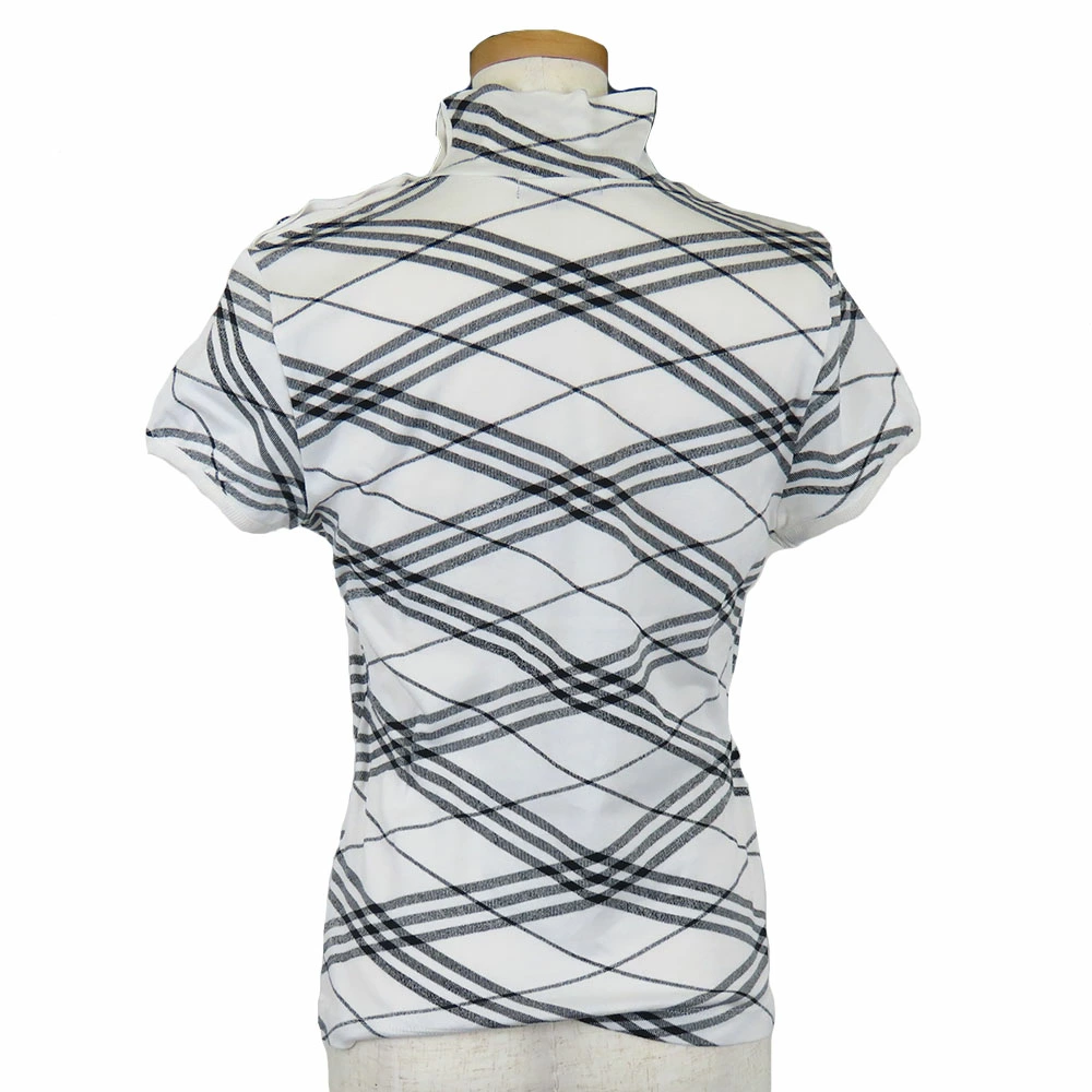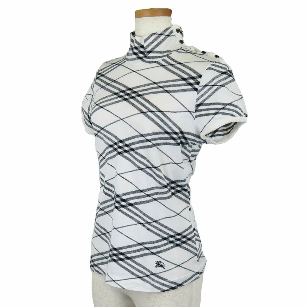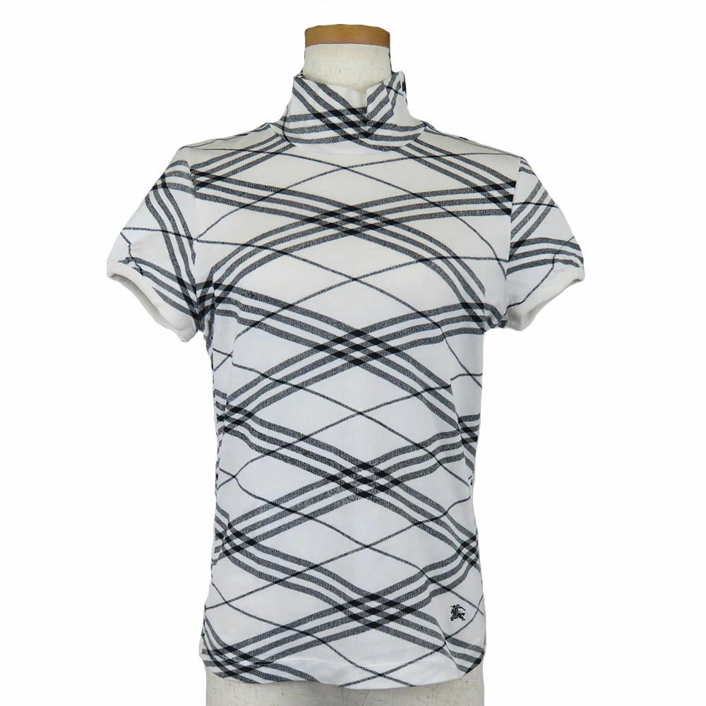| 品名 | 【中古】 バーバリー ロンドン 半袖Tシャツ 2 コットン ホワイト ブラック チェック モックネック レディース 女性 BURBERRY LONDON |