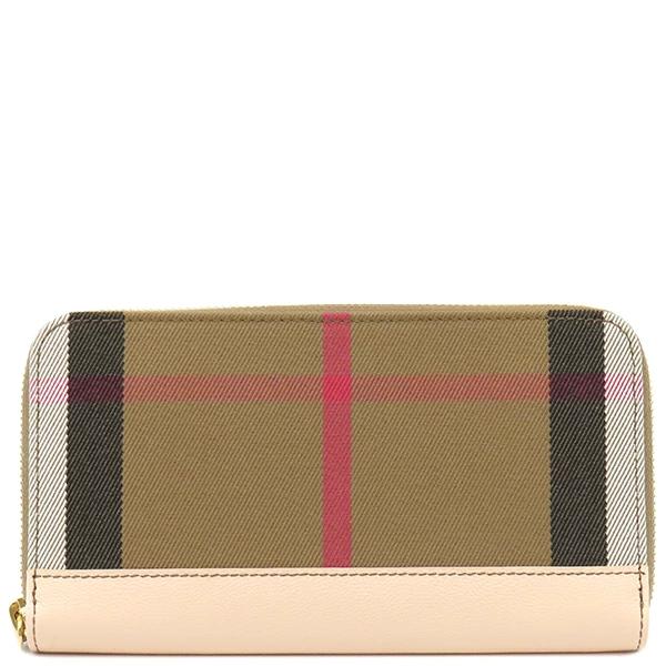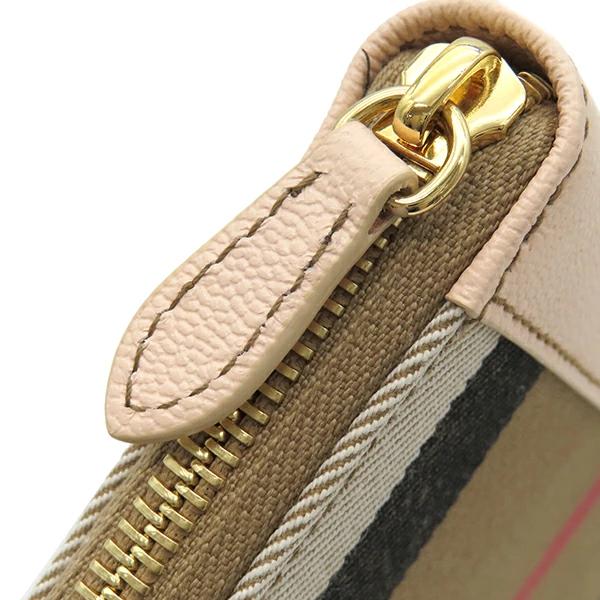 バーバリー BURBERRY 長財布 メガチェック ラウンドジップ ウォレット キャンバス レザー ベージュ ラウンドファスナー ゴールド金具 8084518 レディース 【保存袋】定番 人気 美品 【中古】