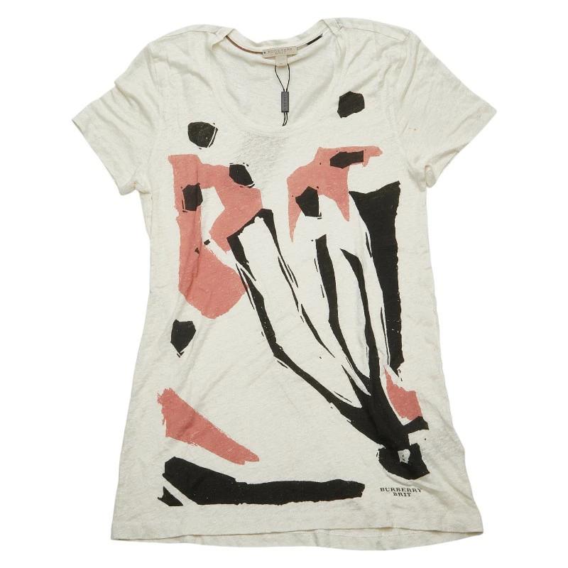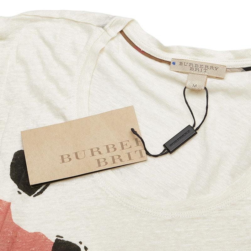 Pre-owned Burberry Men's Summer Knit Sweater, Size M, Beige Multicolor Linen.