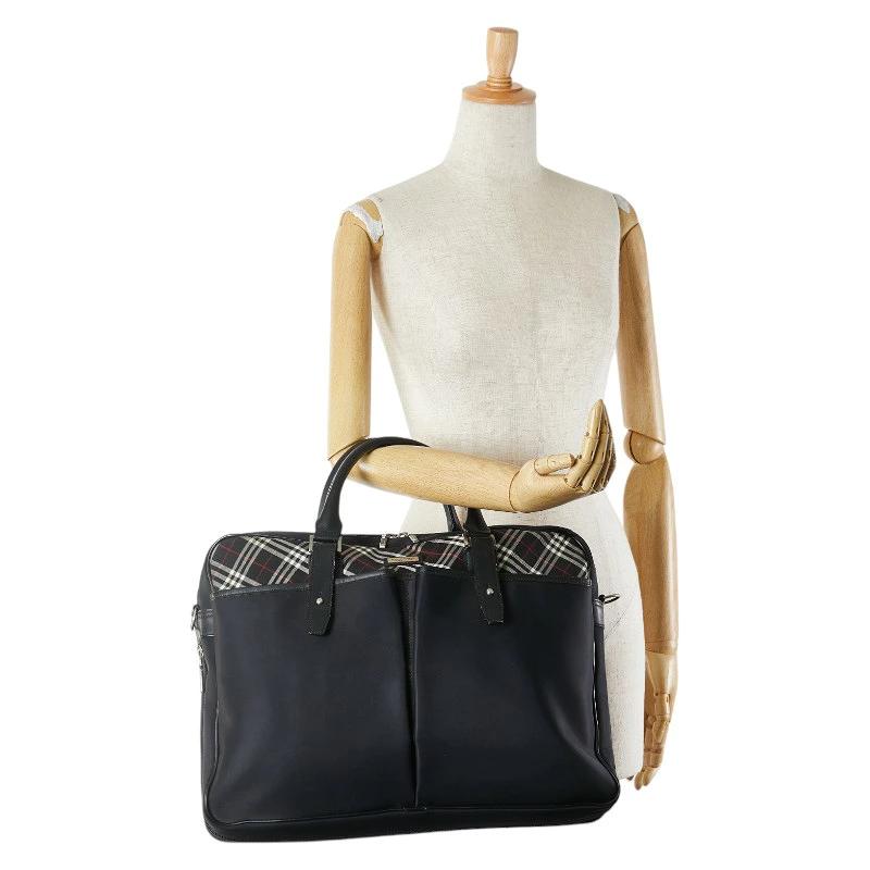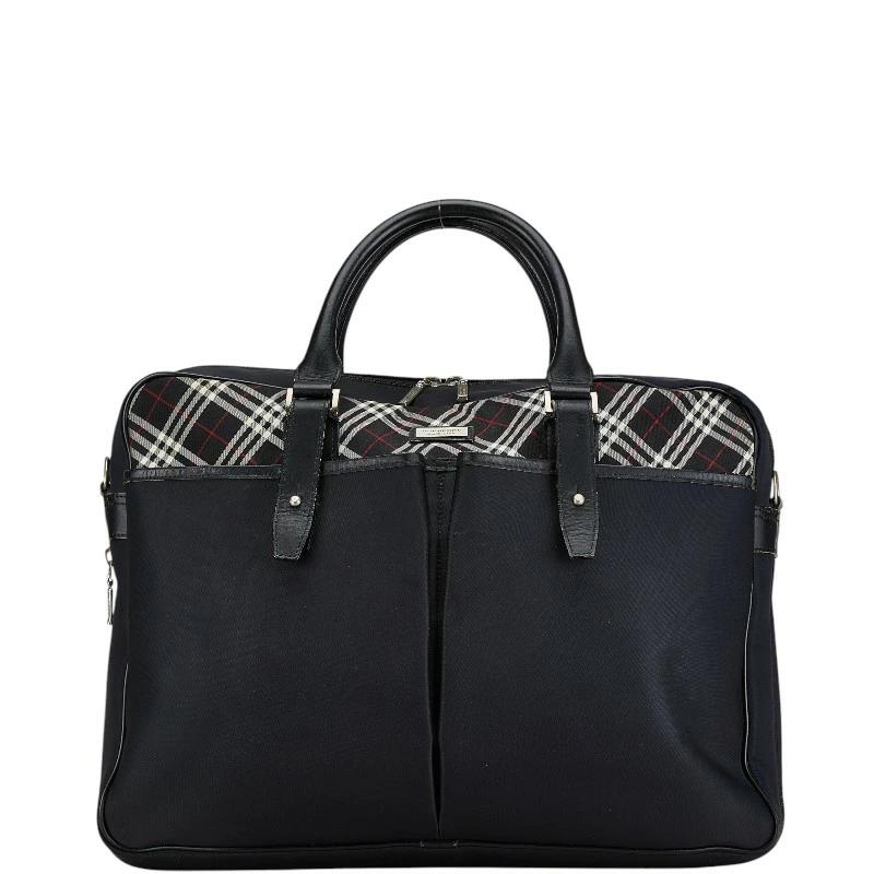 Pre-owned Burberry Nova Check Business Bag in Black Nylon and Leather.
