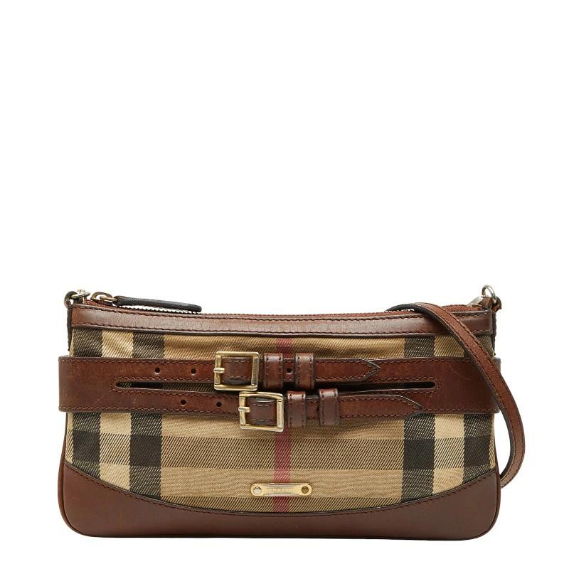 - バーバリー ショルダーバッグ ブラウン ベージュ キャンバス レザー レディース BURBERRY 【中古】