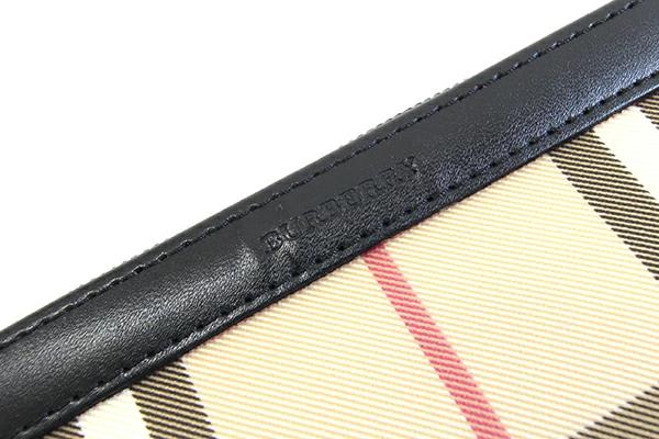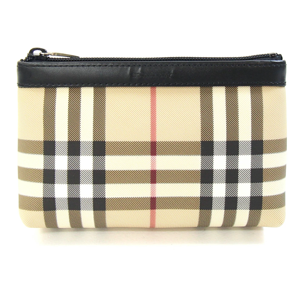 Pre-owned Burberry pouch in beige, black, PVC, and leather. Perfect for small items, cosmetics, and makeup. Nova check pattern. Women's.
