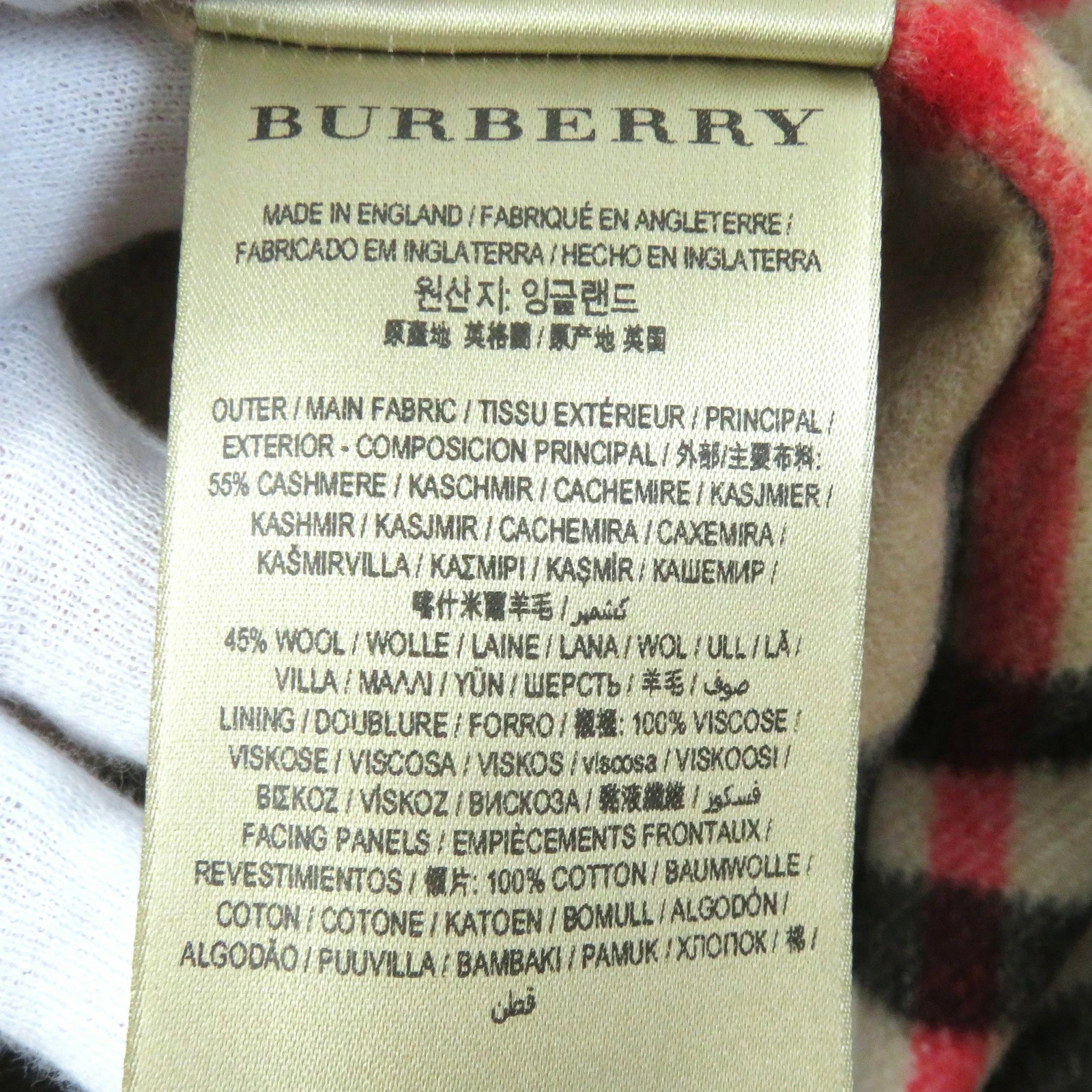 | 素材 (material) | 表地:コットン100% 袖裏地:ビスコース(レーヨン)100% ライナー:カシミヤ55% :ウール45% | ||||||||||||||||