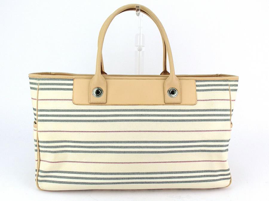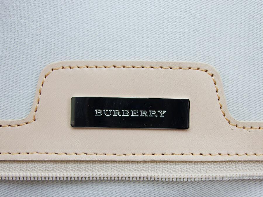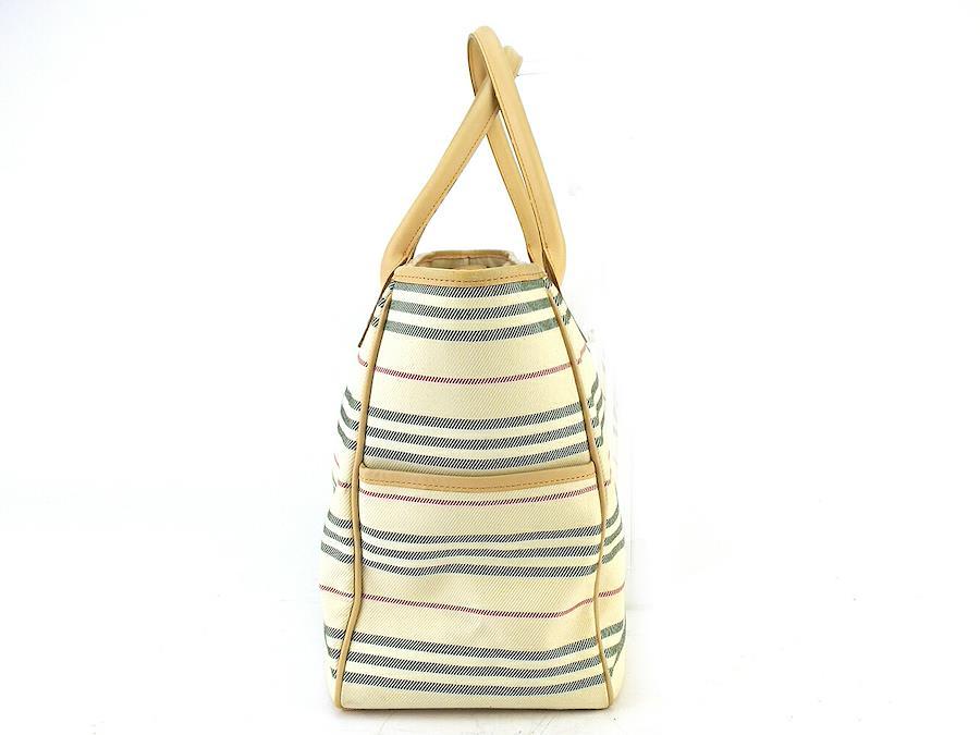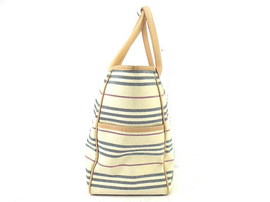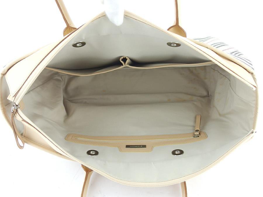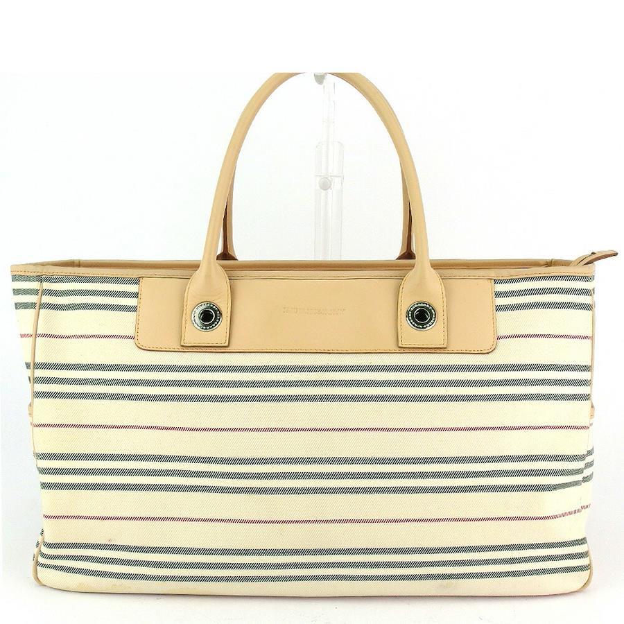 Pre-owned Burberry tote bag in beige, black, red, and silver.