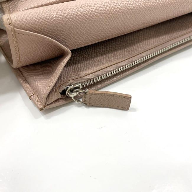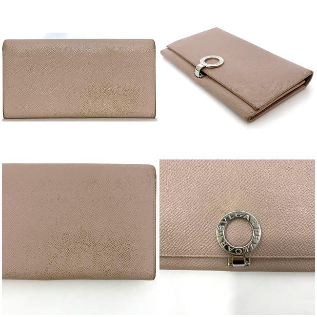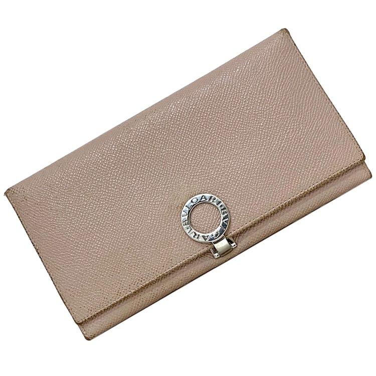 ブルガリ 二つ折り 長財布 ec-23851 ピンクベージュ ブルガリブルガリ クリップ レザー 中古 EL F15 35197 BVLGARI ロゴ 財布 定番 人気 女性 レディース 革 ロング ウォレット 小物 シンプル お洒落 エレガント ワンポイント 高級感 ブランド 本物 鑑定済み