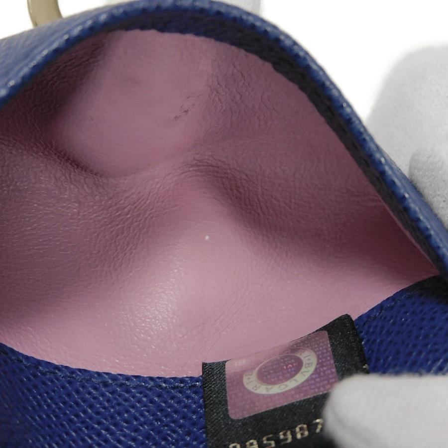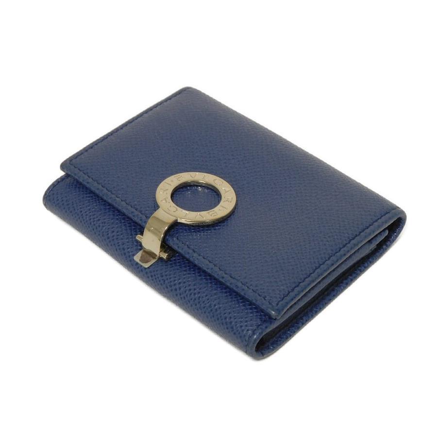 | 型押しカーフレザーにブルガリのロゴクリップがあしらわれた「ロゴ クリップ カードホルダー」二つ折りカードケースです。 |