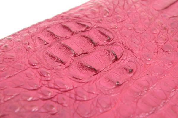 Pre-owned Caiman long wallet with a round zipper, pink, crocodile print, matte finish, exotic leather, women's, Caimaninae