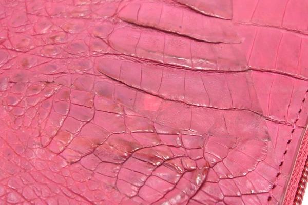 コメントカイマンの独特の柄とピンクとの組み合わせが魅力的なラウンドファスナー長財布です。