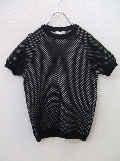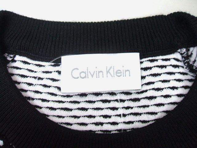 Pre-owned Calvin Klein Women's Short Sleeve Mesh Knit Sweater in Black and White, 2-0702S