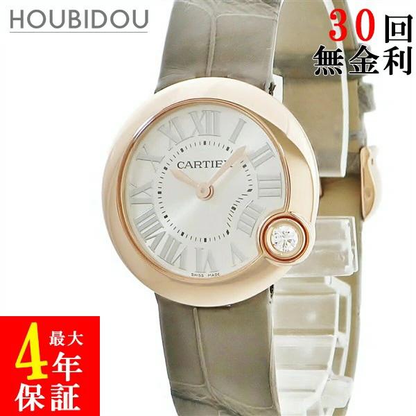 カルティエ Cartier バロン ブラン ドゥ カルティエ WGBL0005 K18PG無垢 純正ダイヤ シルバー ラウンド レディース 腕時計クオーツ シルバー 【中古】【店頭受取不可】