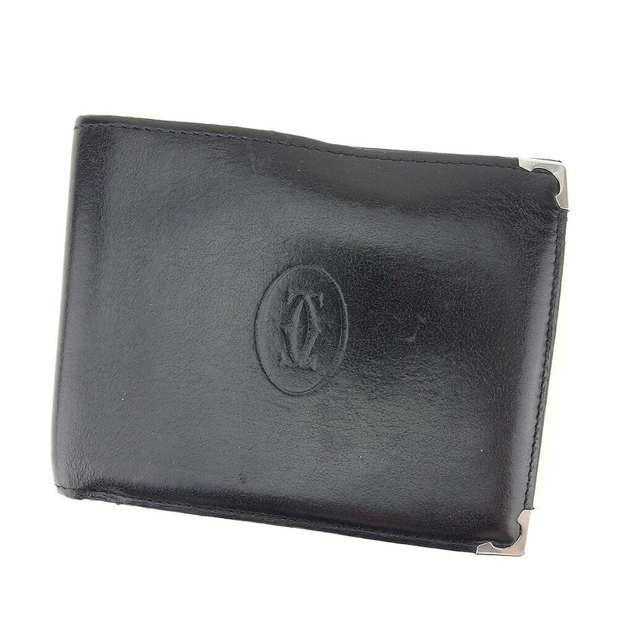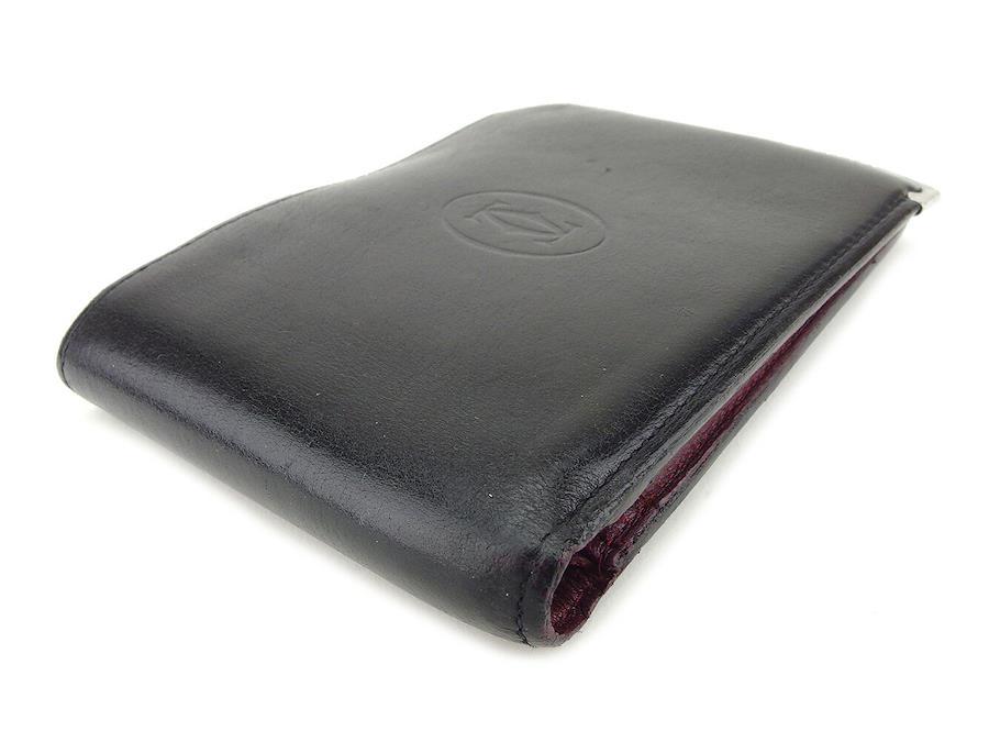 Pre-owned Cartier bi-fold wallet with cabochon, black, burgundy, and silver, for women