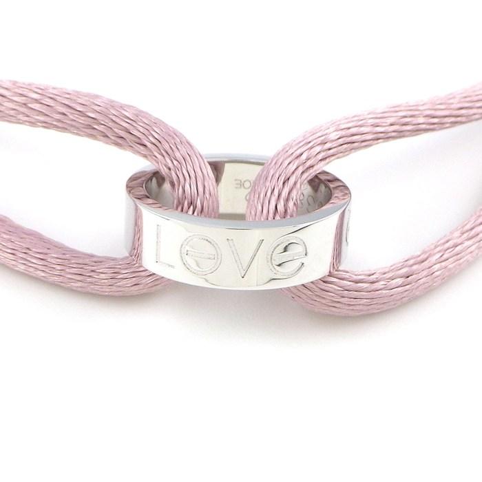 Pre-owned Cartier Love Bracelet Charity, 18K White Gold, Pink Cotton Cord