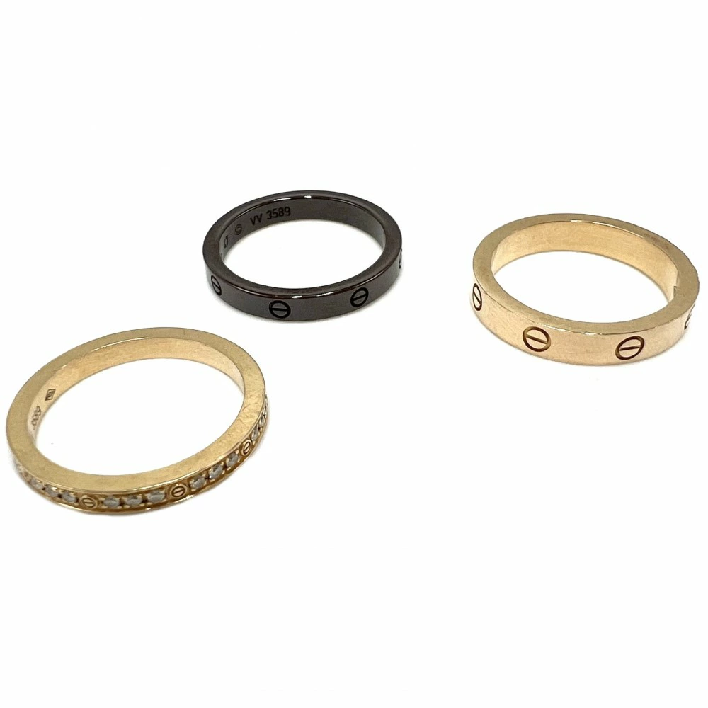 Pre-owned Cartier Love Ring for Women, Three-Hoop Design, 18K PG 750 with Screws, Size 47, Three-Hoop Design, 18K Pink Gold and Ceramic, Approx. Size 7, Gold Brown, Approx. 7.1g