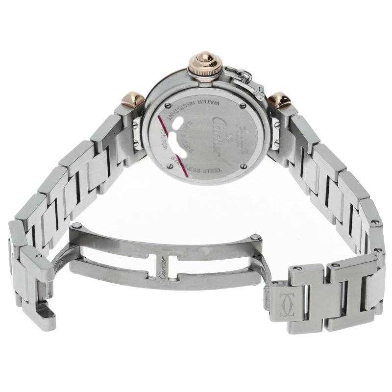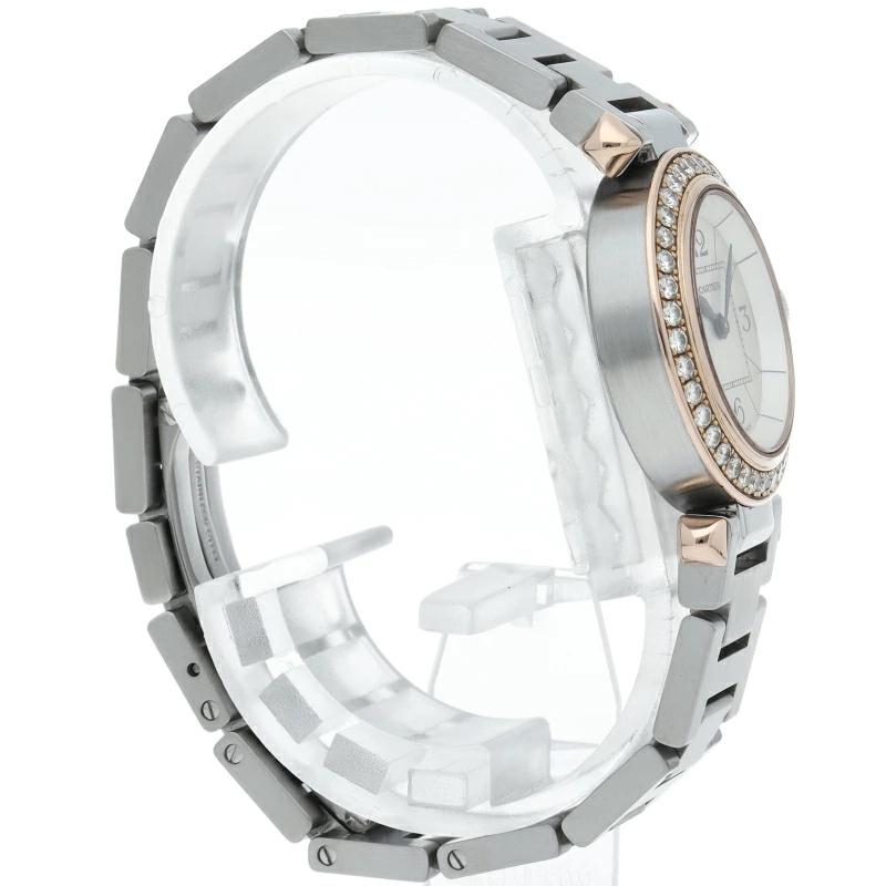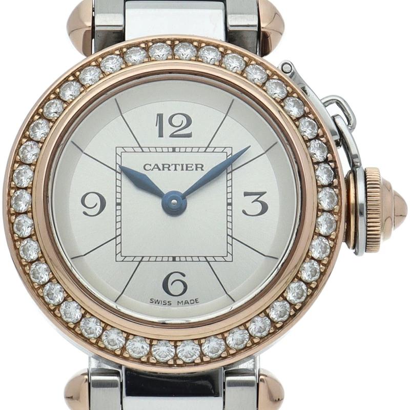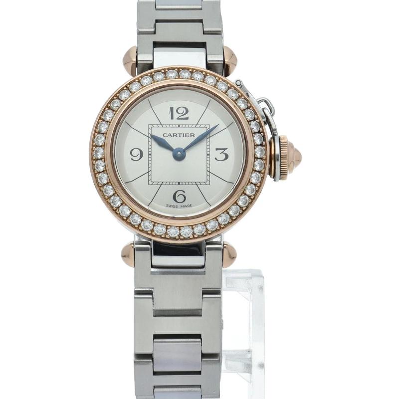 | カルティエの人気「パシャ」シリーズの小振りで女性にオススメの新型モデル、ミスパシャ。可愛らしいデザインでシンプルにまとまったスタイルを選ばない1本。ベゼルのいはダイヤモンドが施されております。 |