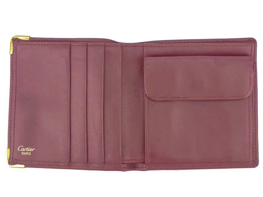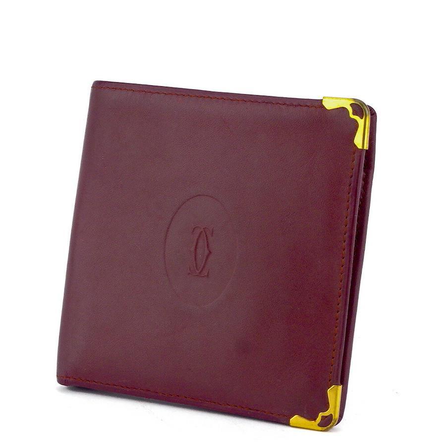 Pre-owned Cartier Must Line bifold wallet in Bordeaux and gold for women