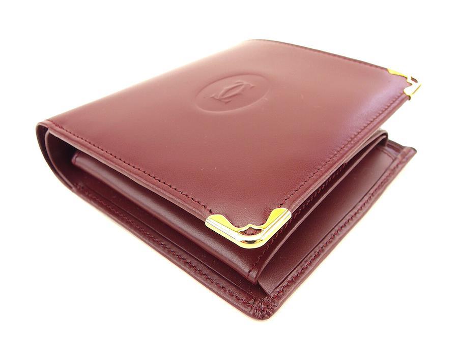 Pre-owned Cartier Must Line bifold wallet in Bordeaux and gold for women