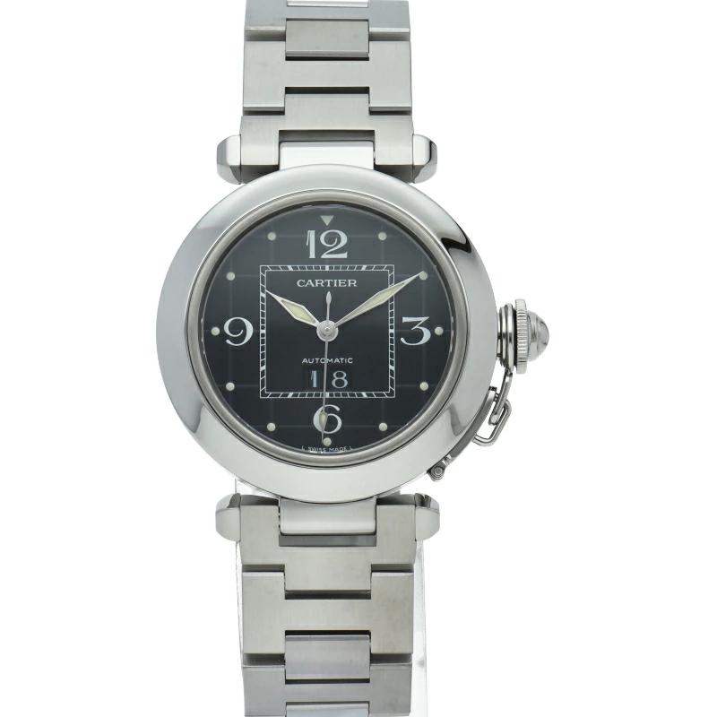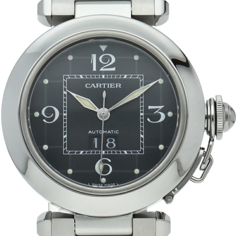 | カルティエの人気「パシャC」シリーズ。大きい日付表示が特徴的なビッグデイト。視認性も良くどんなシーンにも活用できるラウンドケースがオシャレな1本。 |